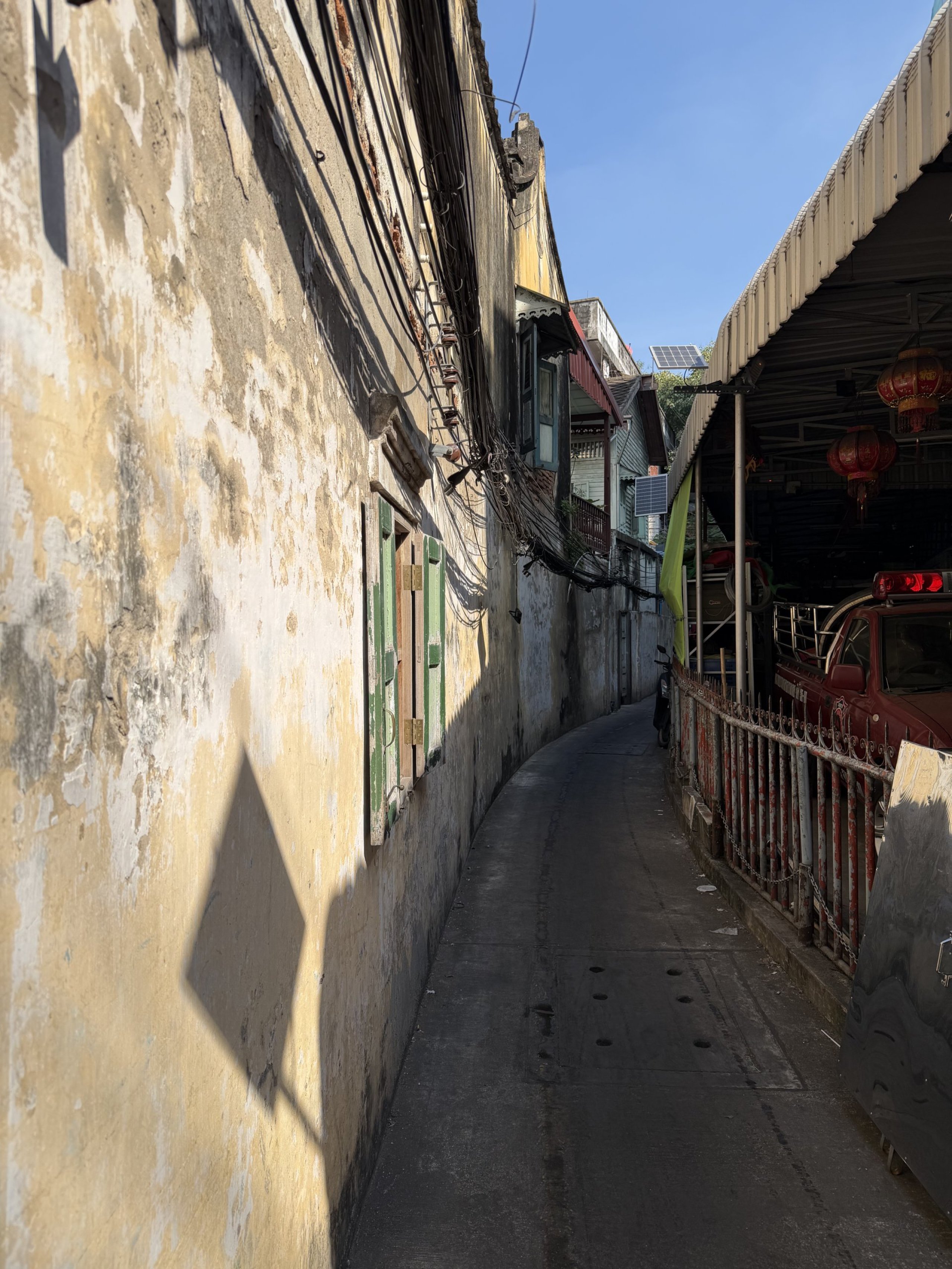 Úzke uličky, hrdzavé autodielne, staré čínske domy, malé svätyne a kaviarne v bývalých skladoch vytvárajú prostredie, ktoré pripomína skôr filmové kulisy než turistickú štvrť.