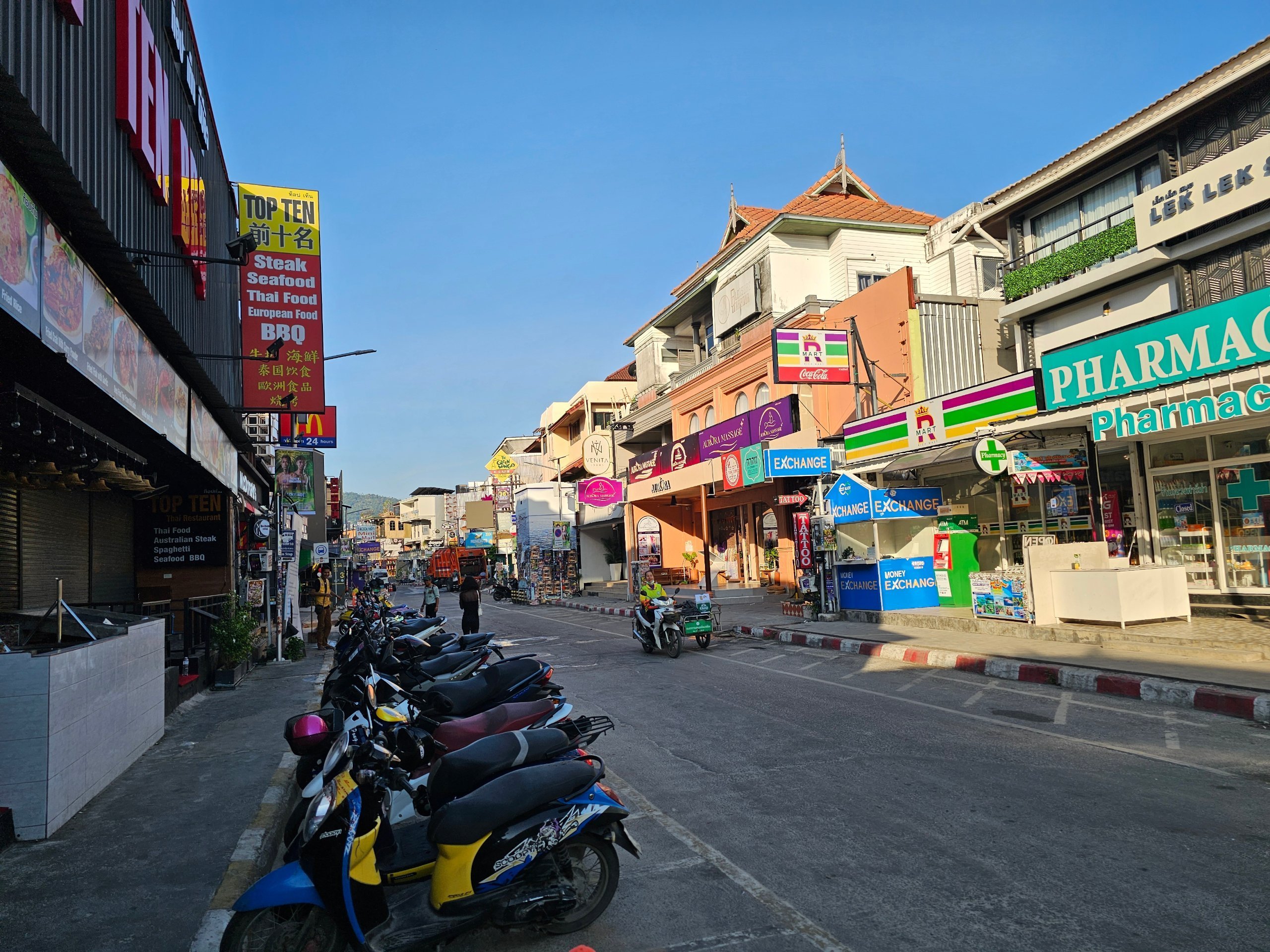 - 🛵 Skúter: praktické riešenie, ale v centre je väčší ruch a aj so skútrom môže byť problém zaparkovať (napríklad plážový klub ARK má vlastné platené parkovisko - 100 thb na deň za skúter)