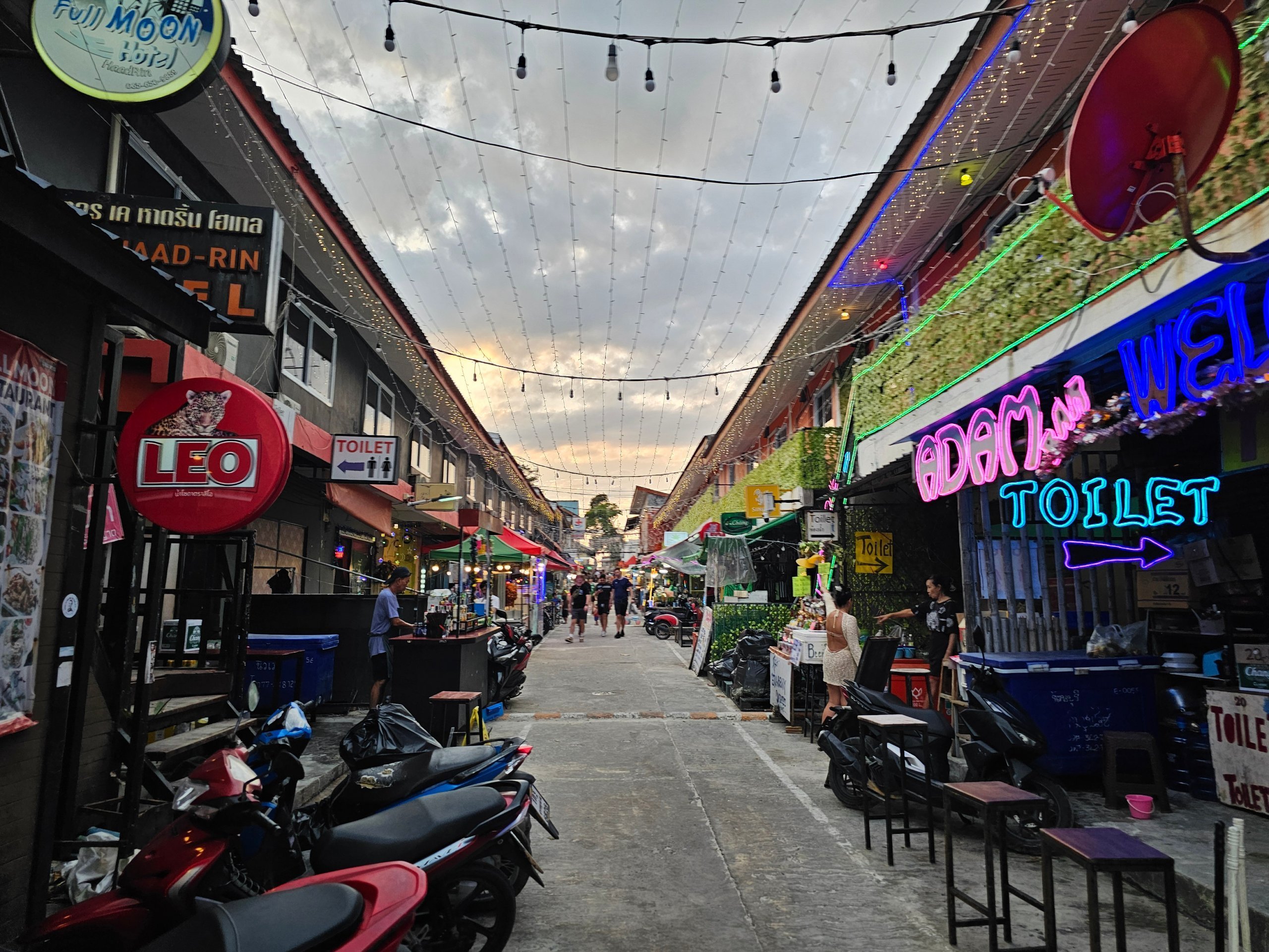 Pešia ulica Haad Rin je najživšia počas Full Moon Party, ale mimo nej je otvorená.