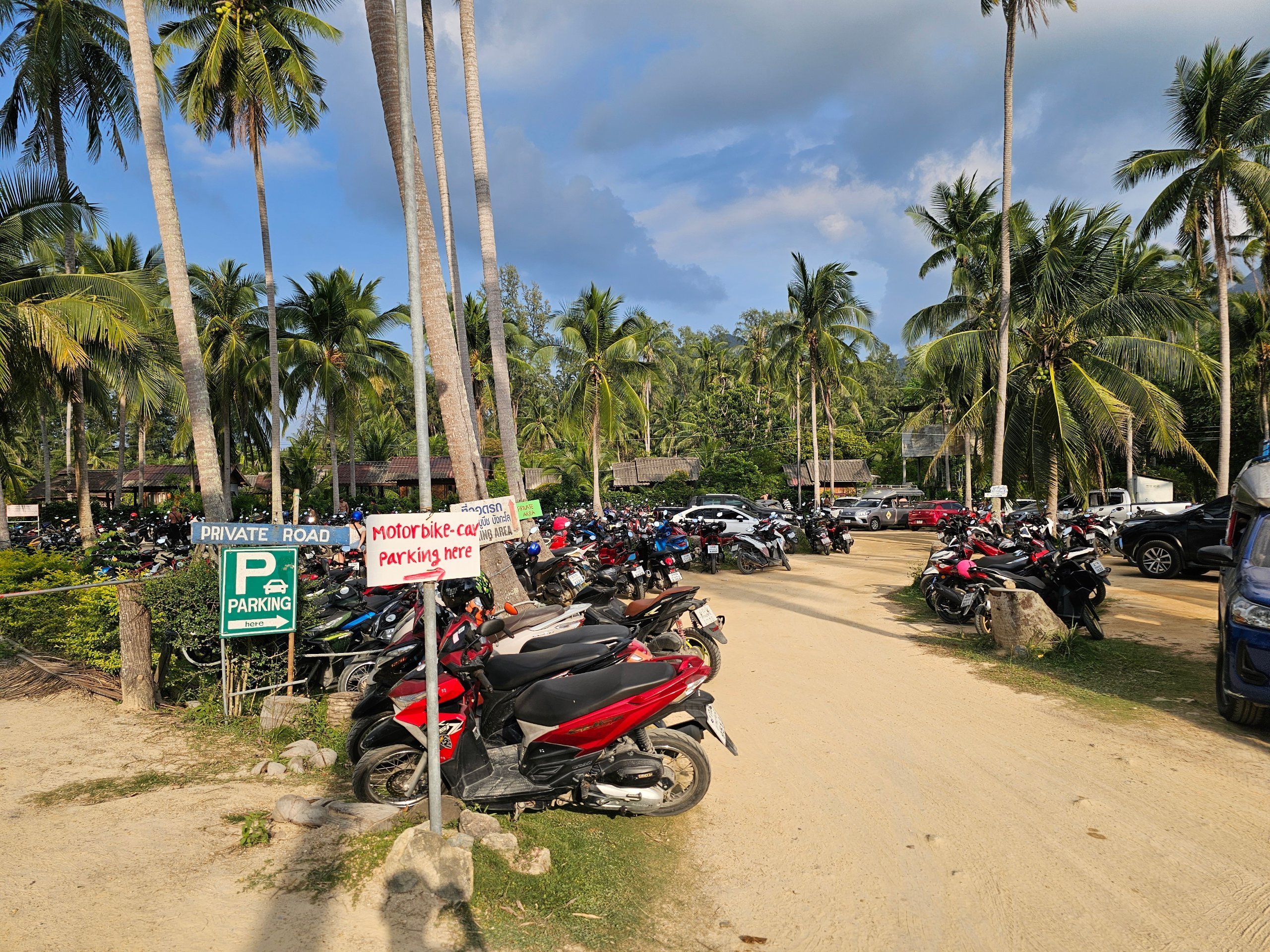 Parkovanie je jednoduché - pre skútre priamo pri pláži. Pre autá len pozdĺž hlavnej cesty (je tu dostatok miest). V oboch prípadoch je parkovanie bezplatné.