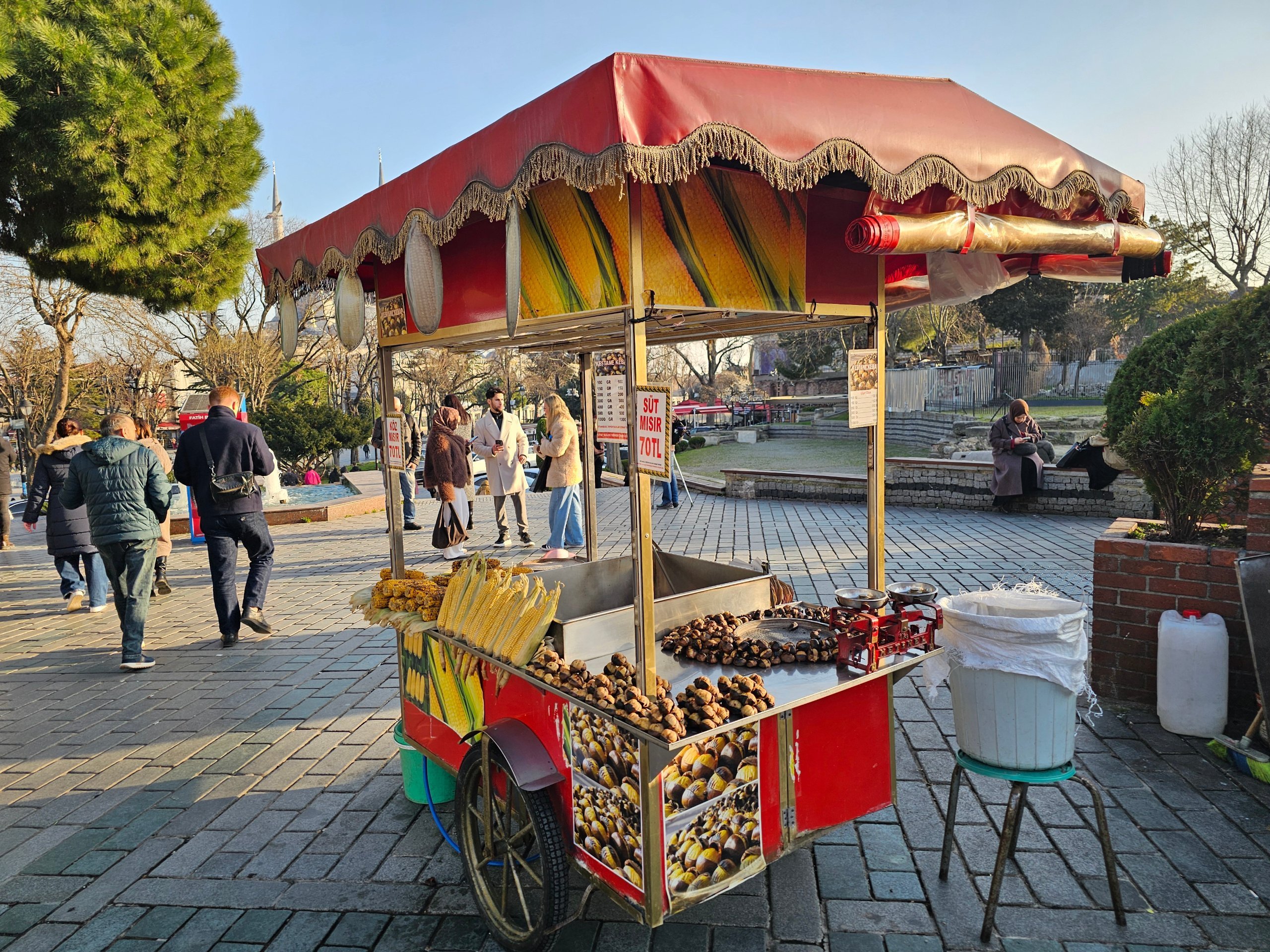 Špecifickou kultúrou Istanbulu sú všadeprítomné stánky s varenou kukuricou a pečenými gaštanmi.