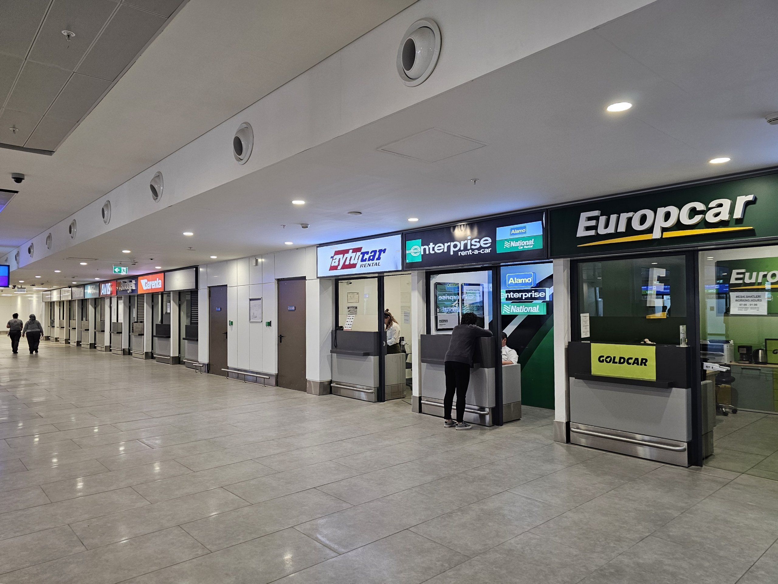 Predajne áut sa nachádzajú v príletových halách všetkých terminálov.