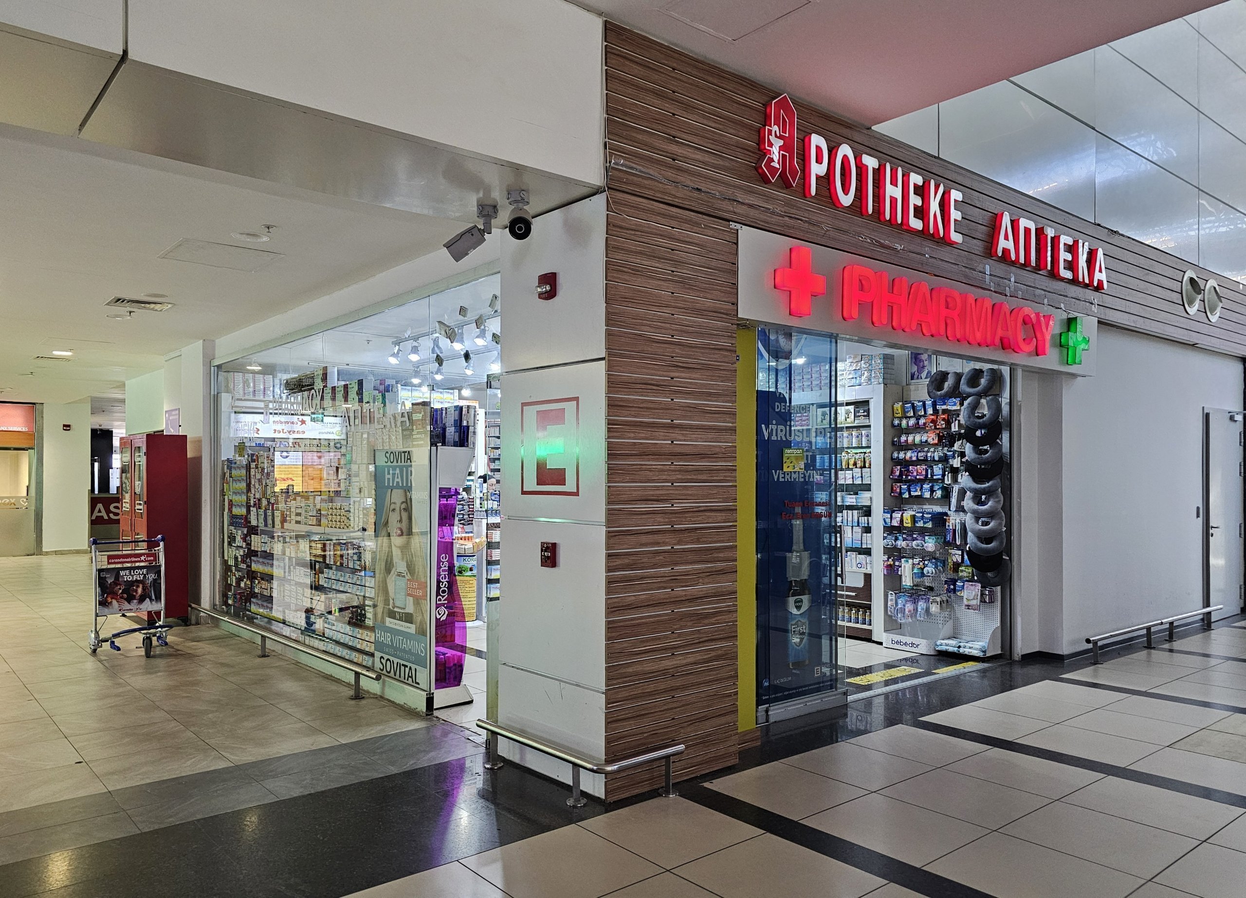 Lekárne nájdete vo verejných priestoroch oboch terminálov (v termináli 1 sú otvorené 24 hodín denne, v termináli 2 od 9:00 do 18:00).