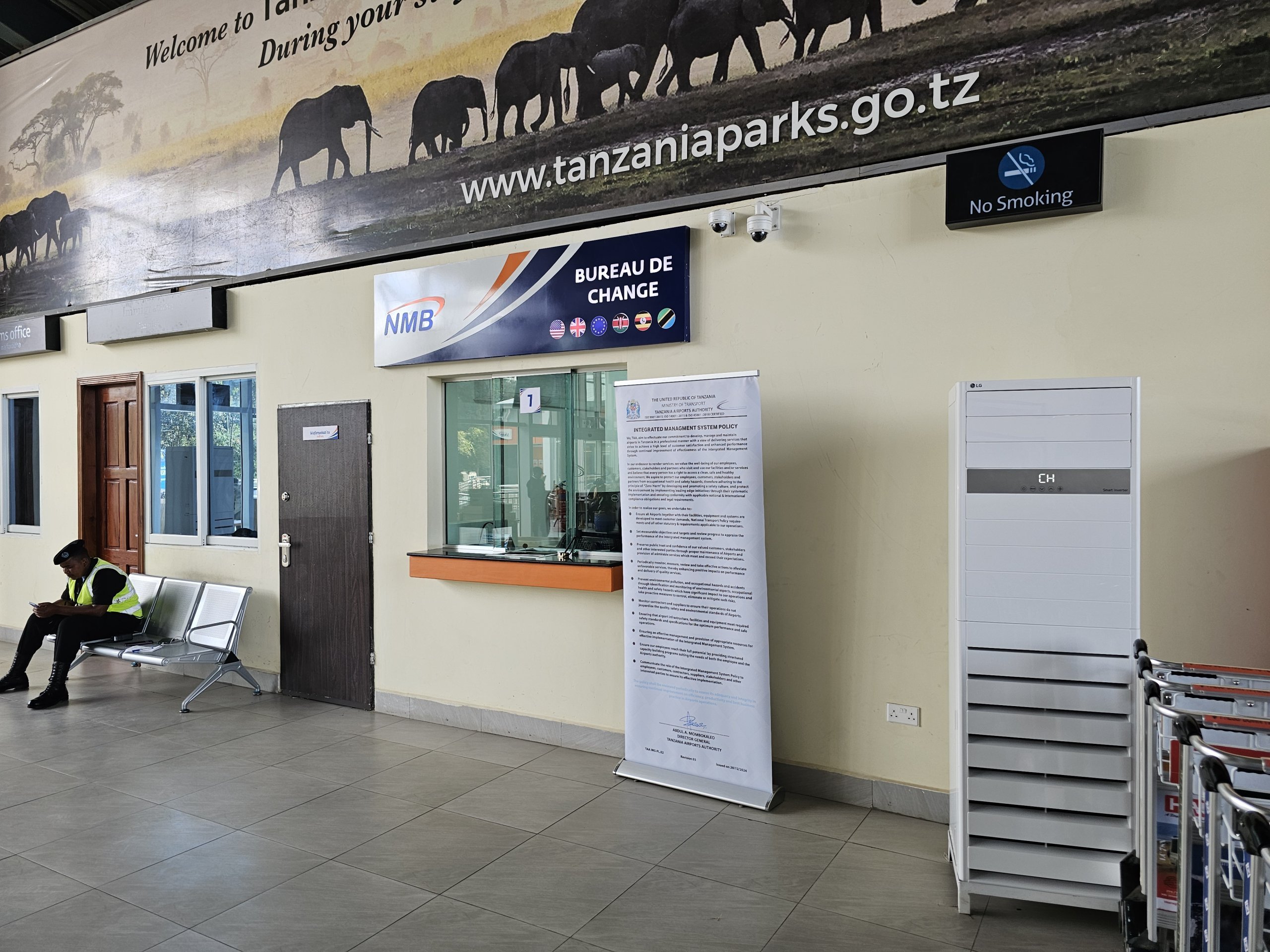 V príletovej hale sa nachádza zmenáreň NMB. Tá istá banka prevádzkuje bankomat medzi príletovou a odletovou halou.