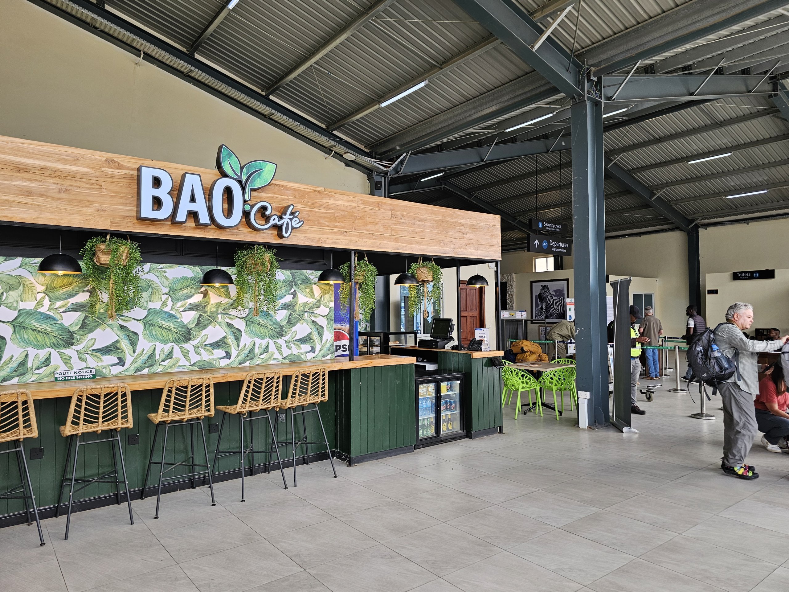 Lacná kaviareň s malým občerstvením sa nachádza v malom kiosku oproti odletovému terminálu.