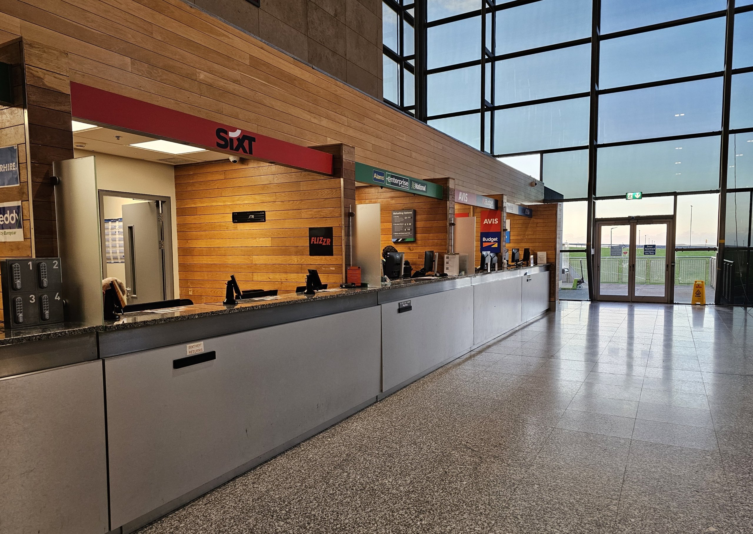 Môžete si tu vybaviť všetky potrebné veci a potom si nájsť vlastné auto na parkovisku asi 250 metrov naľavo od letiskovej haly.