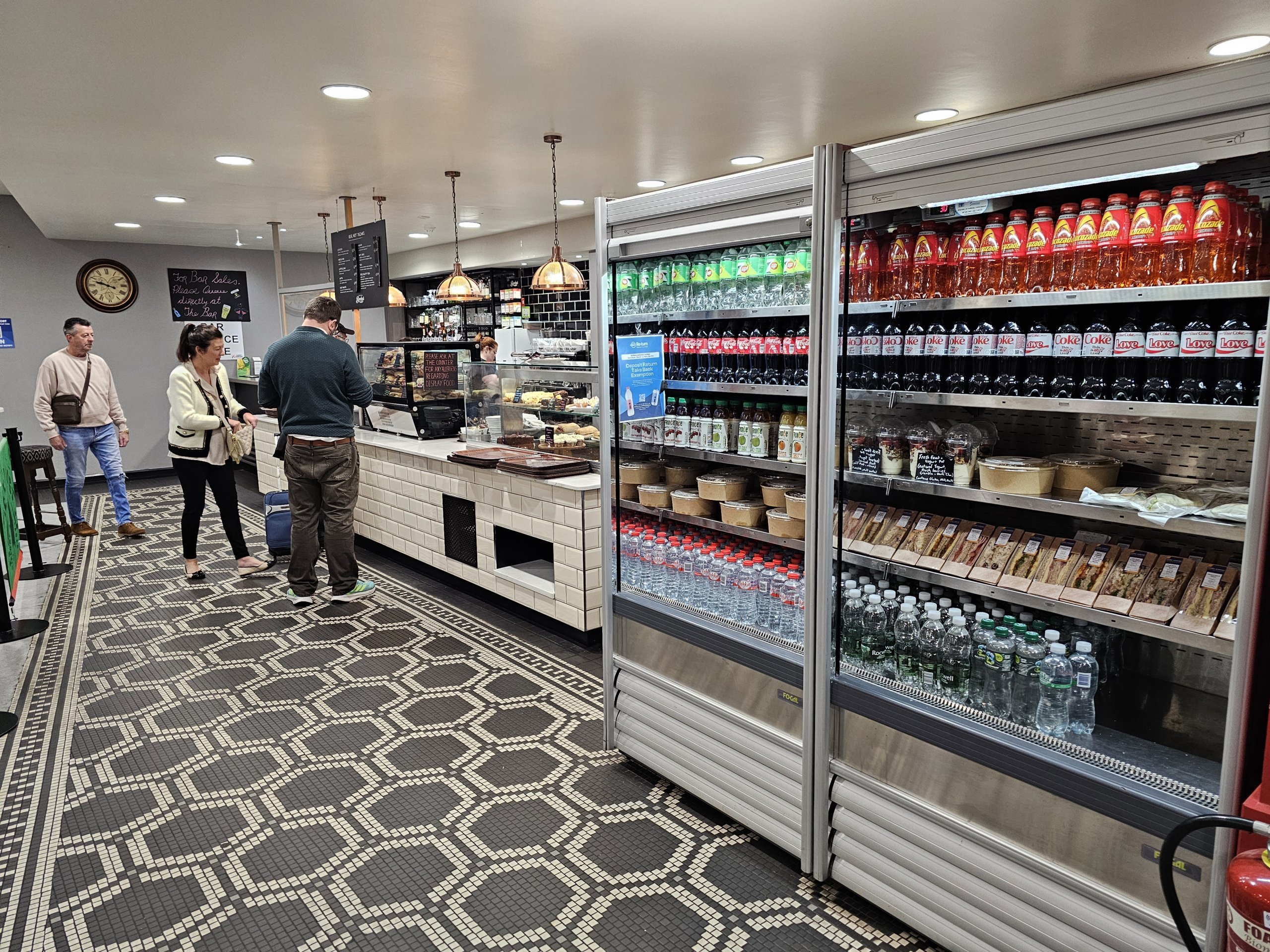 Vo verejných priestoroch nájdete jednu jedáleň, ktorá ponúka jednoduché studené jedlá, kávu alebo nealkoholické nápoje.