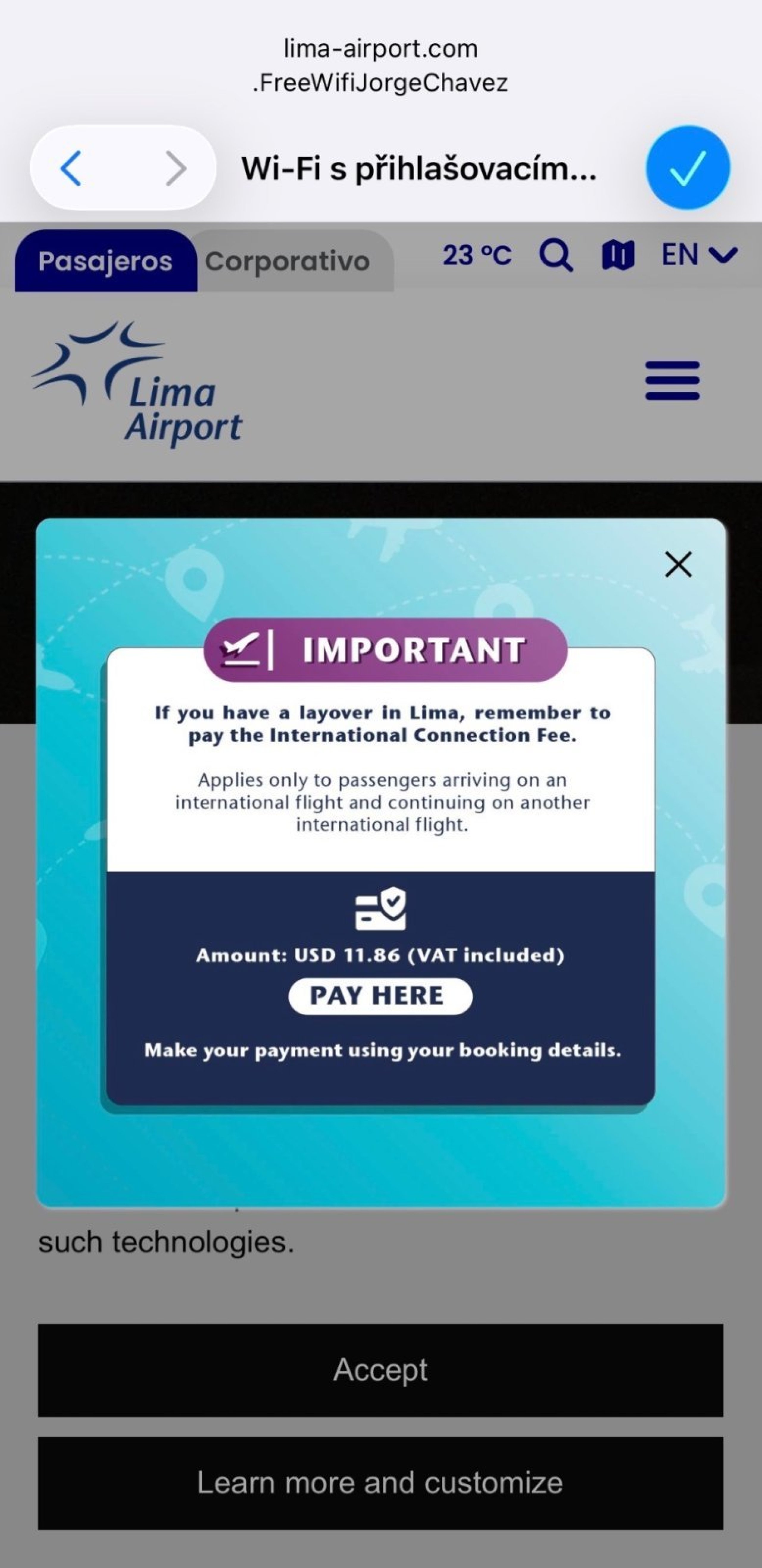 Žiaľ, letisko v Lime (LIM) si od 7.12.2025 účtuje tranzitný poplatok (TUUA) vo výške 11,86 USD z prestupných letov.
