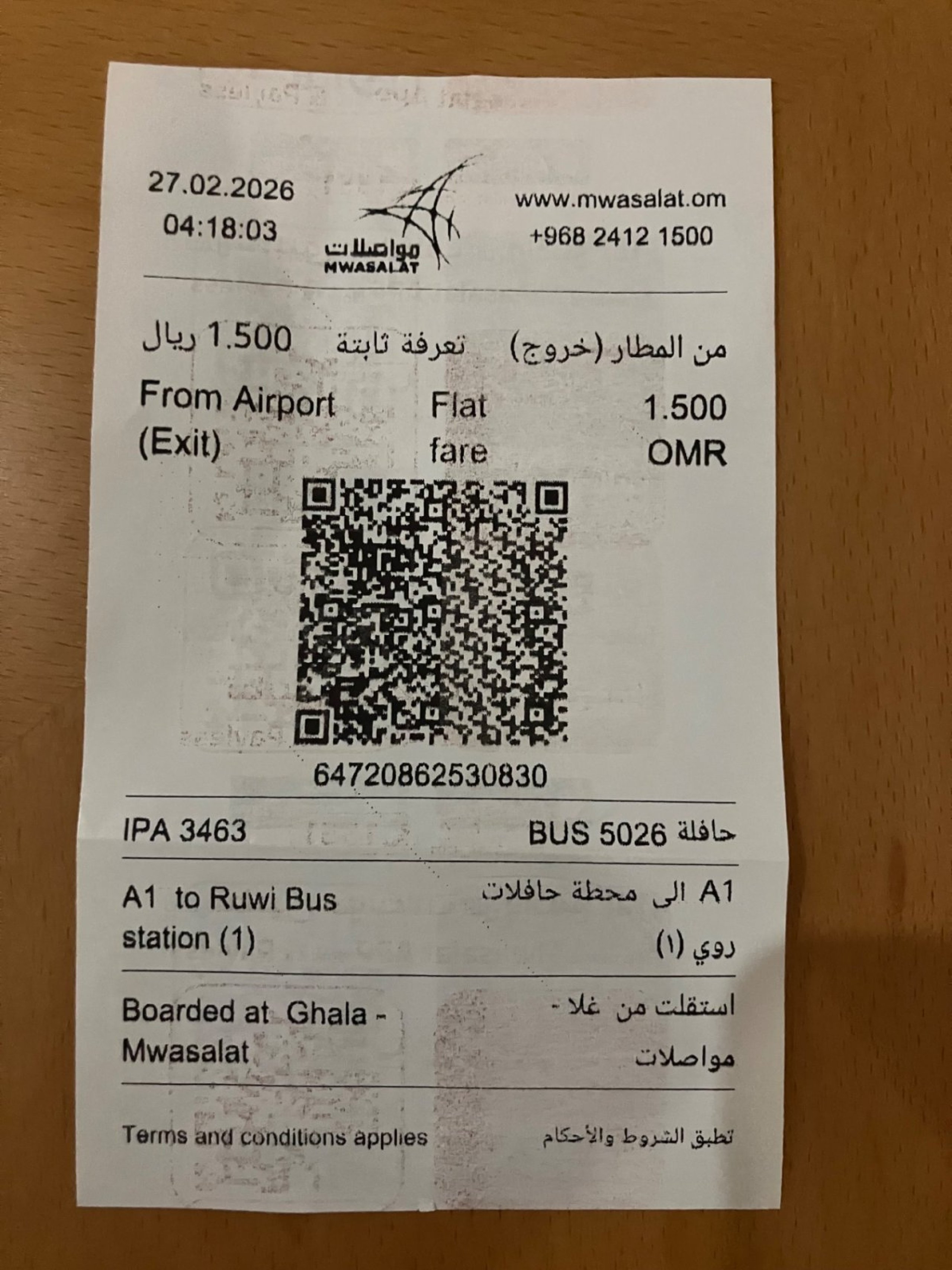 A1 bus ticket from the airport costs 1,5 OMR, dnešná skúsenosť