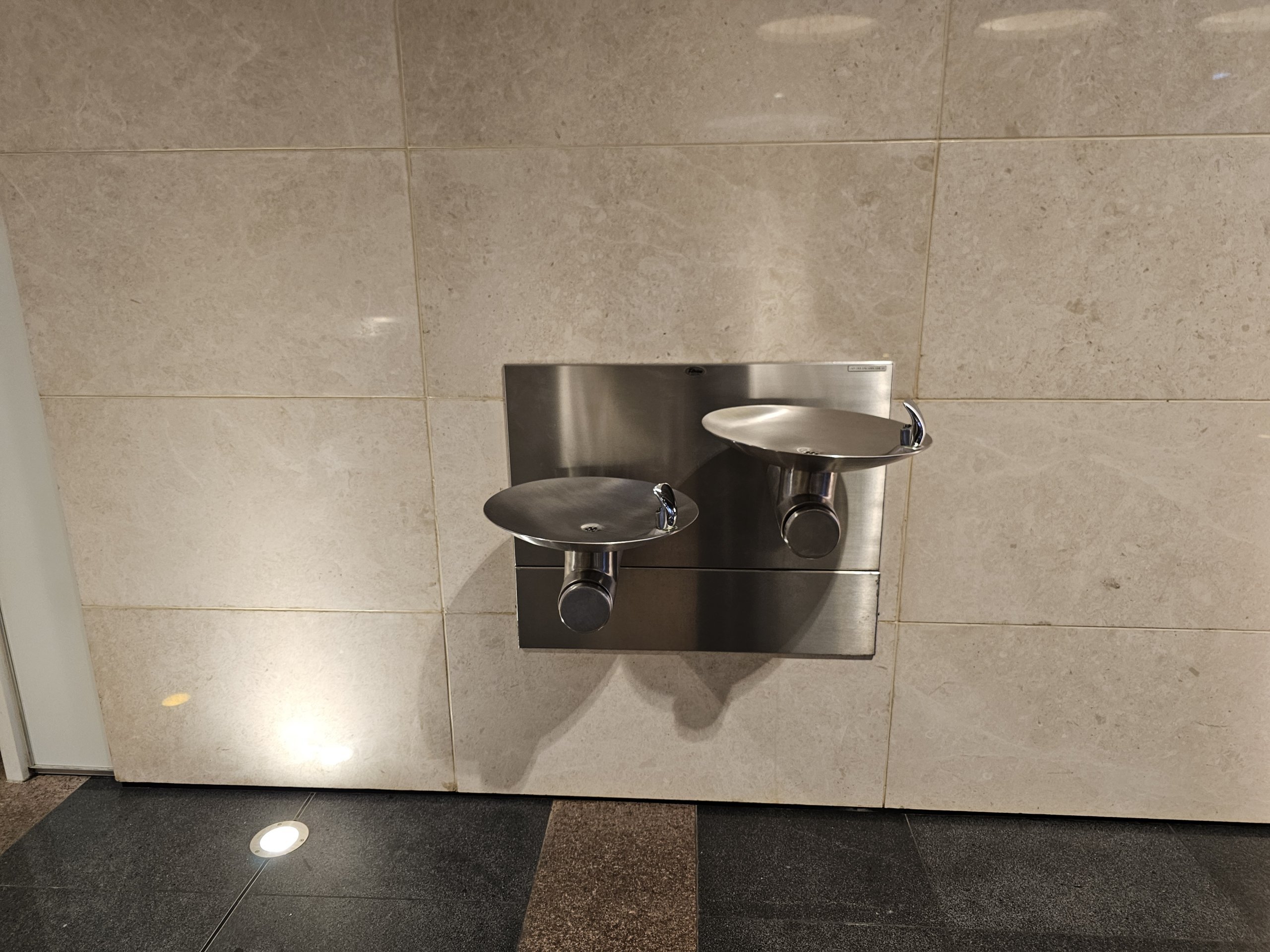 Po bezpečnostnej kontrole sa nachádza niekoľko stánkov s bezplatnou pitnou vodou.