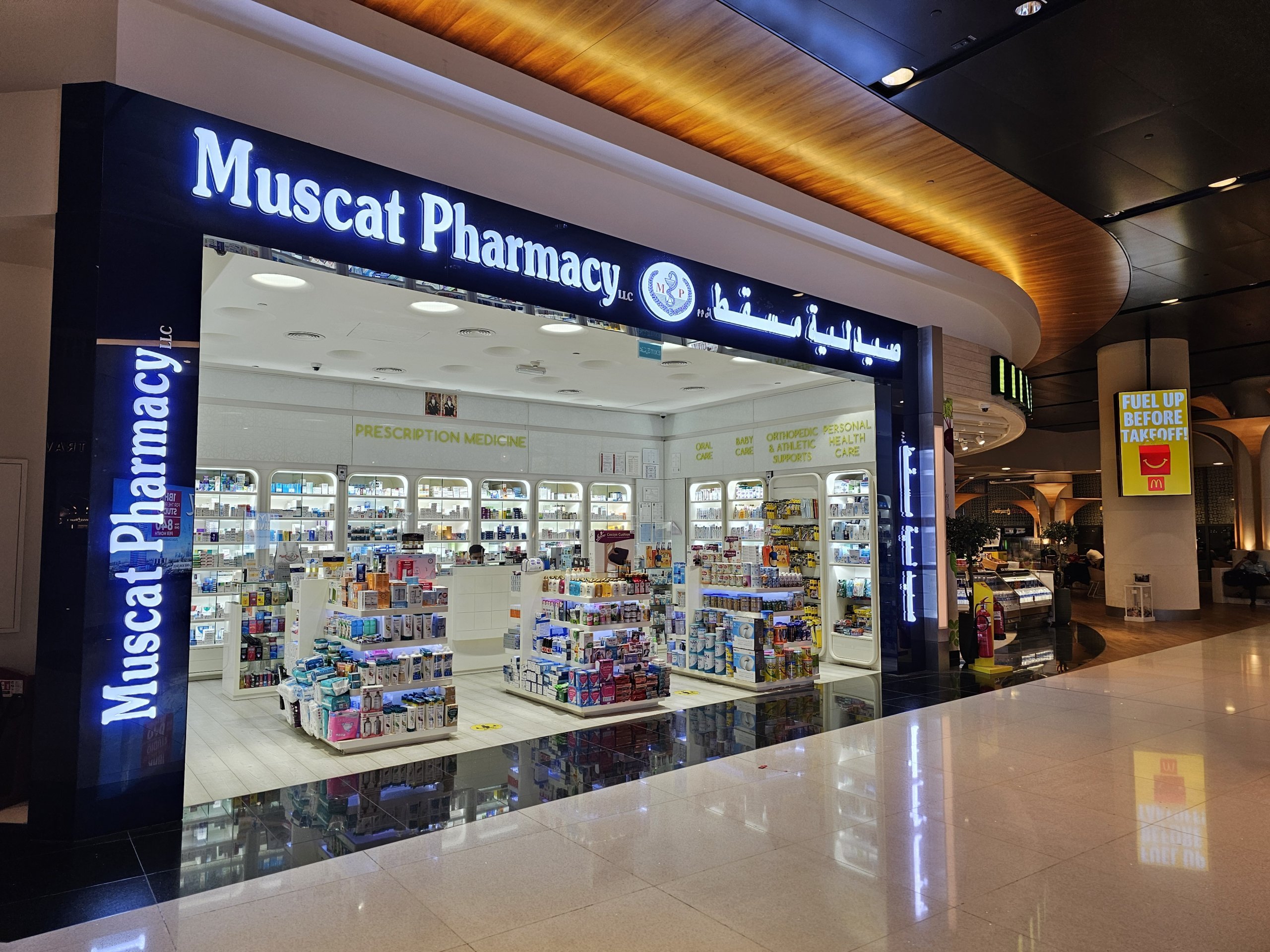 Lekárne sú k dispozícii vo verejnej časti (úroveň odletov) a v tranzitnej časti.