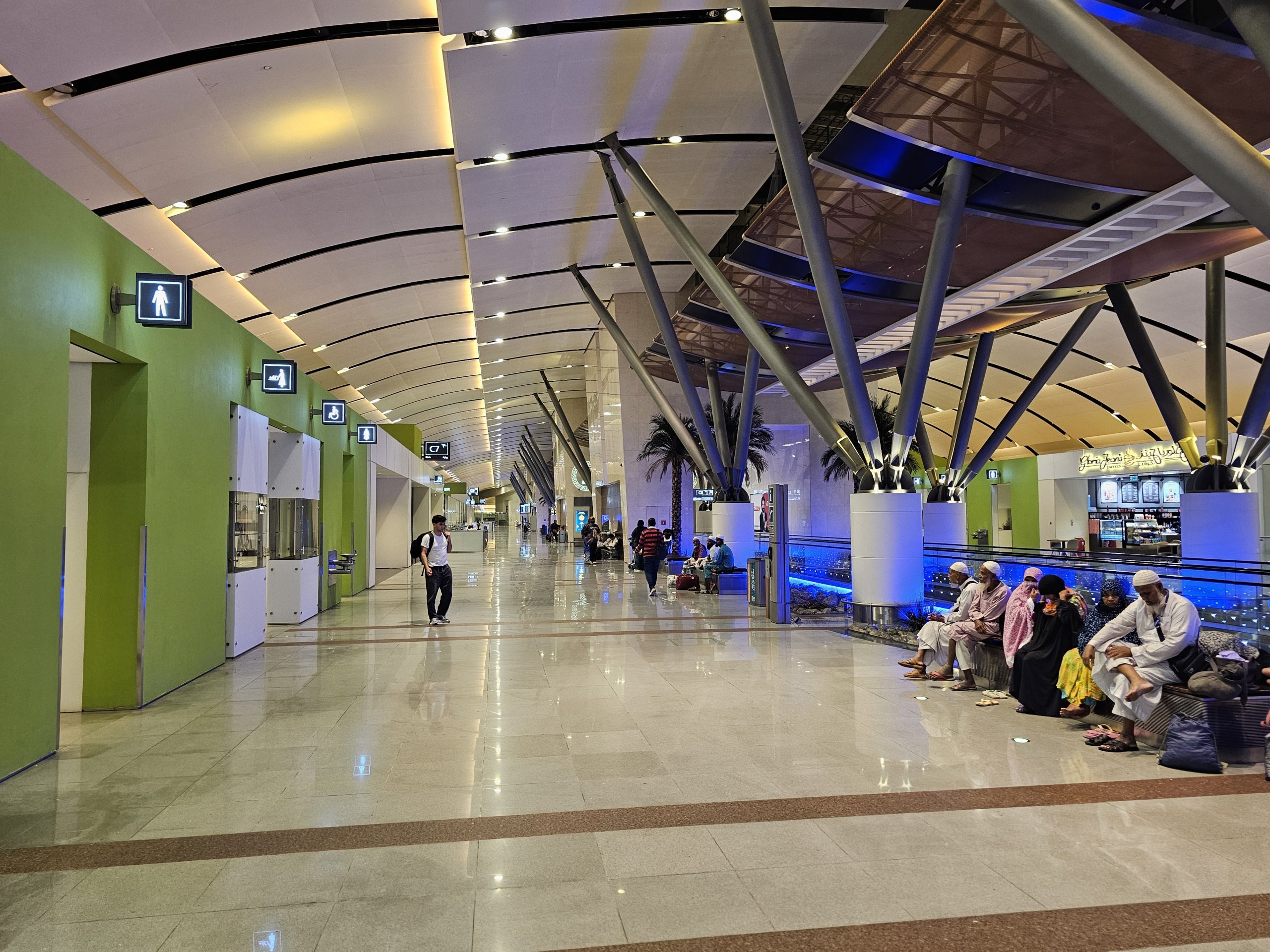 Priestor za bezpečnostnou kontrolou pozostáva z centrálnej zóny plnej obchodov a reštaurácií a troch výbehov s odletovými bránami. Vzdialenosti nie sú veľké a proces imigračnej kontroly býva rýchly.