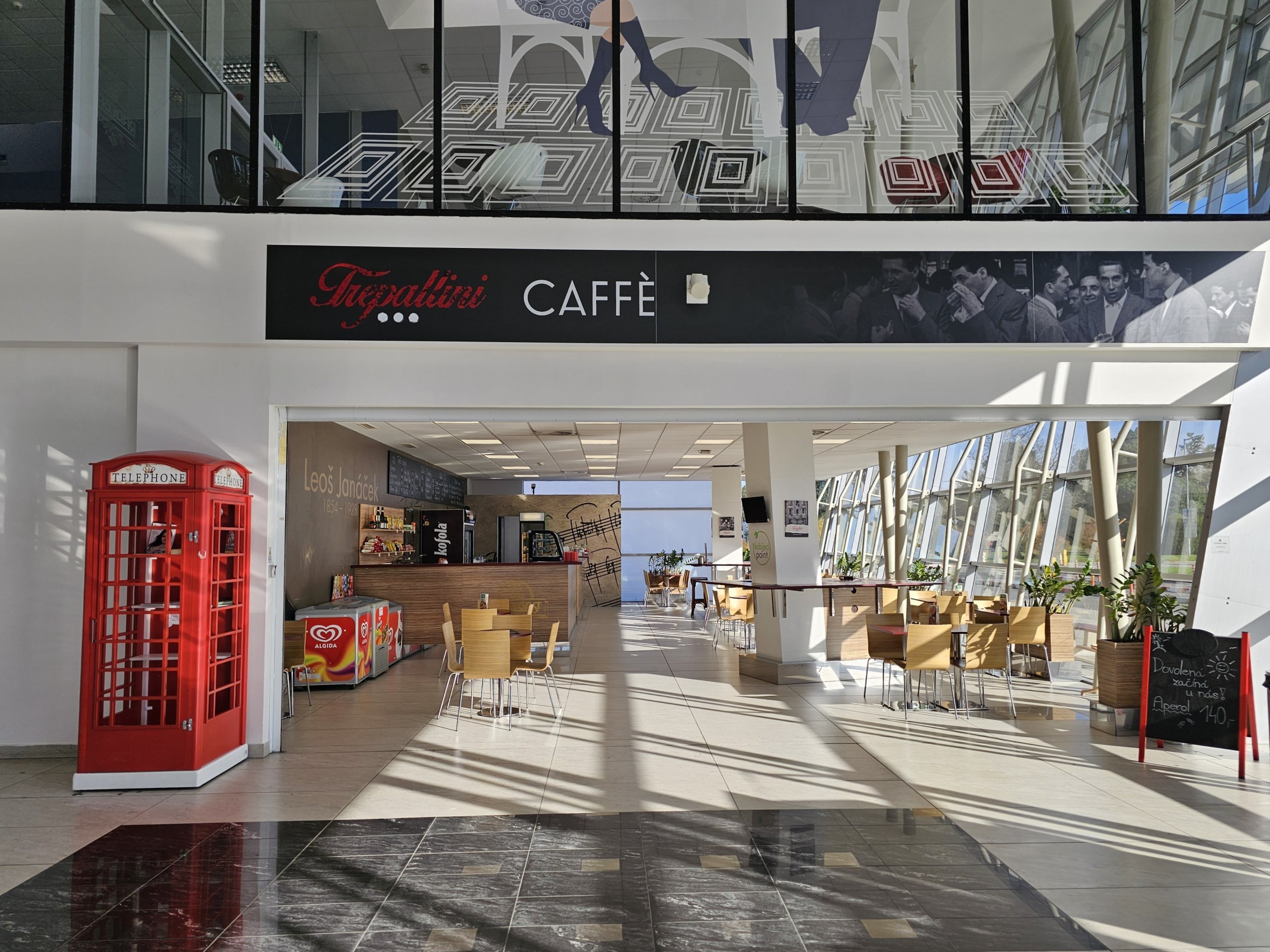 Vo verejných priestoroch letiska nájdete kaviareň Fragollini, ktorá ponúka bagety, sendviče alebo nápoje.