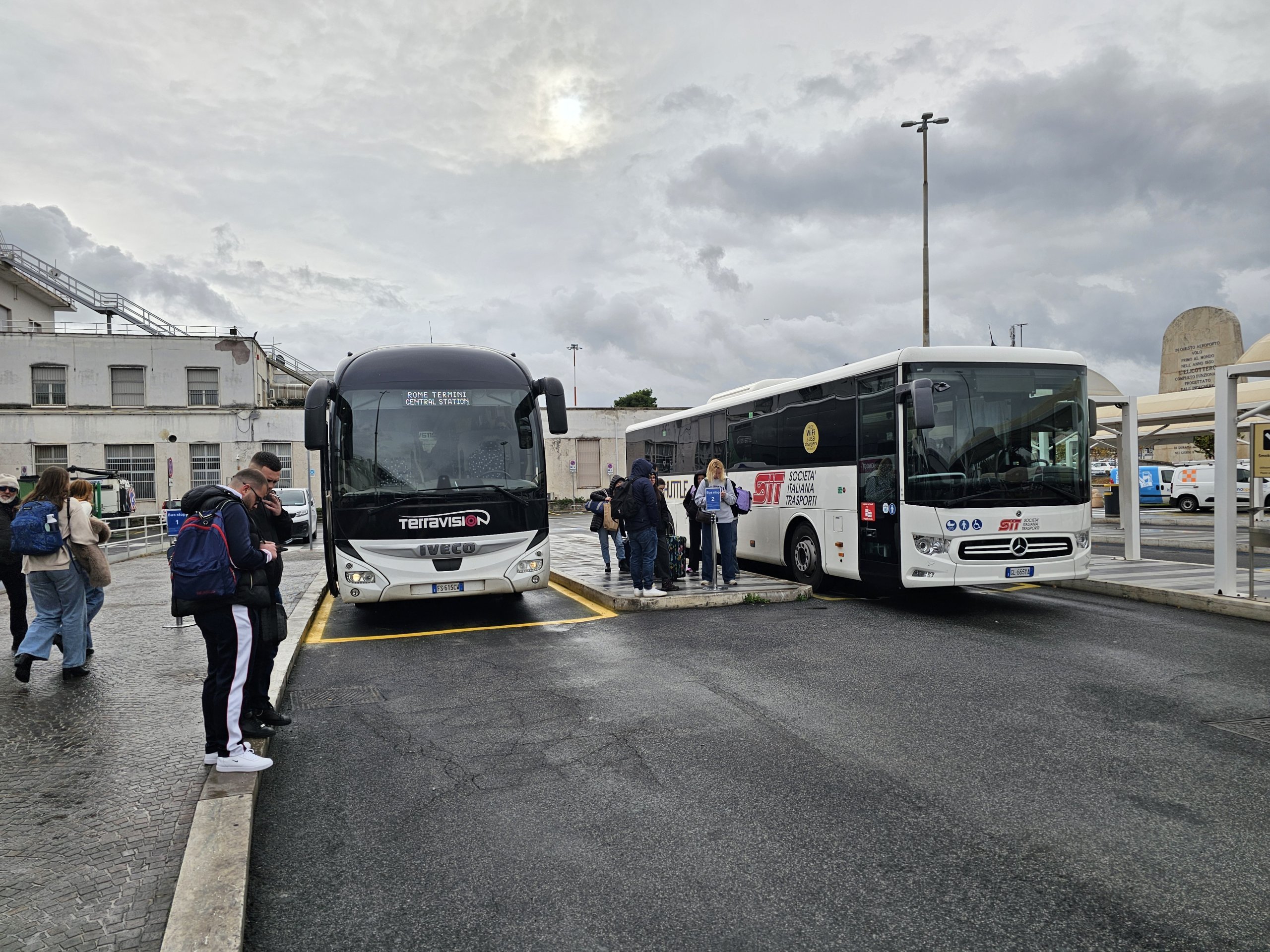 Najpohodlnejšie sú priame expresné autobusy na hlavnú stanicu Termini, ktoré po ceste nikde inde nezastavujú.