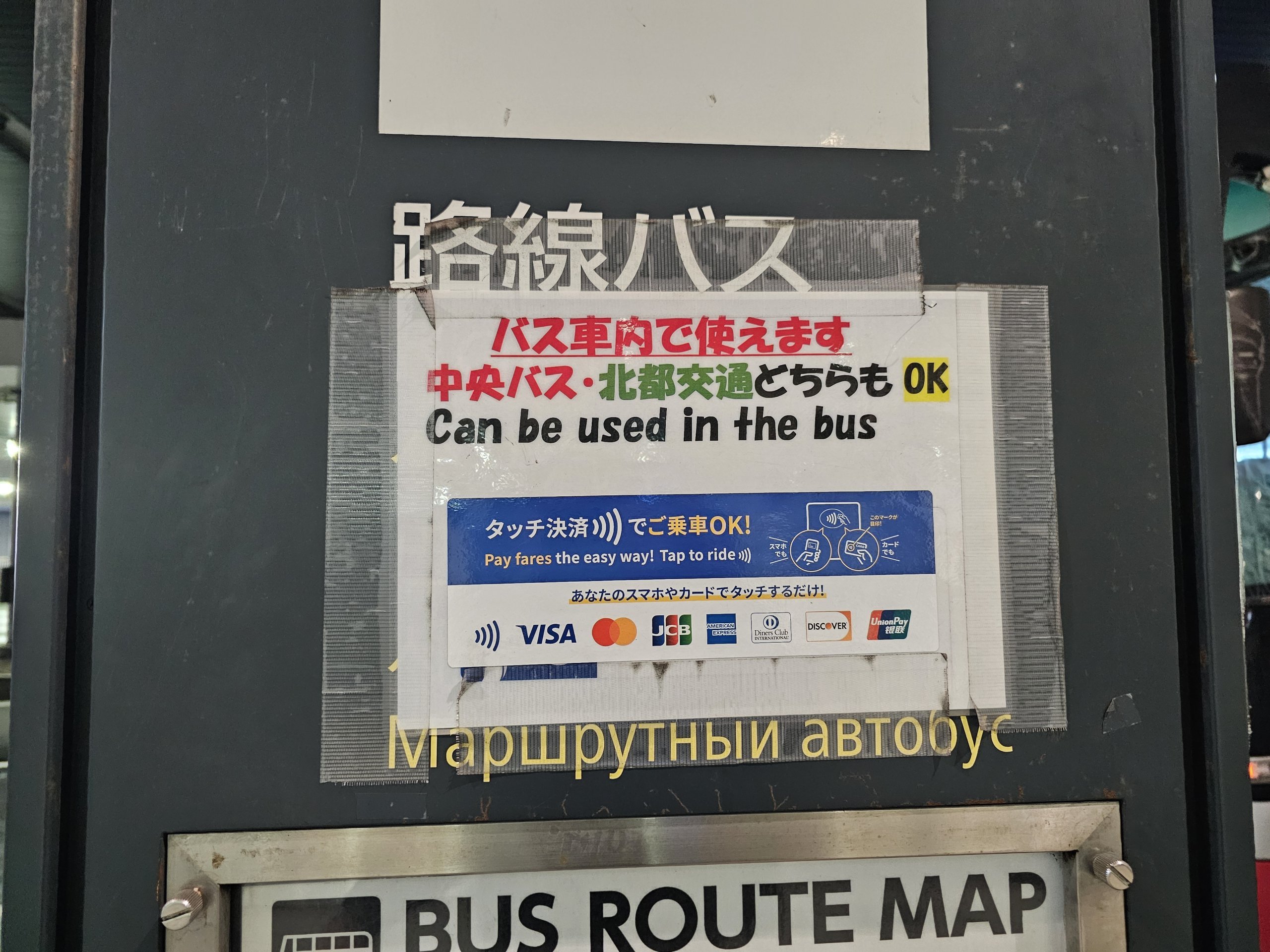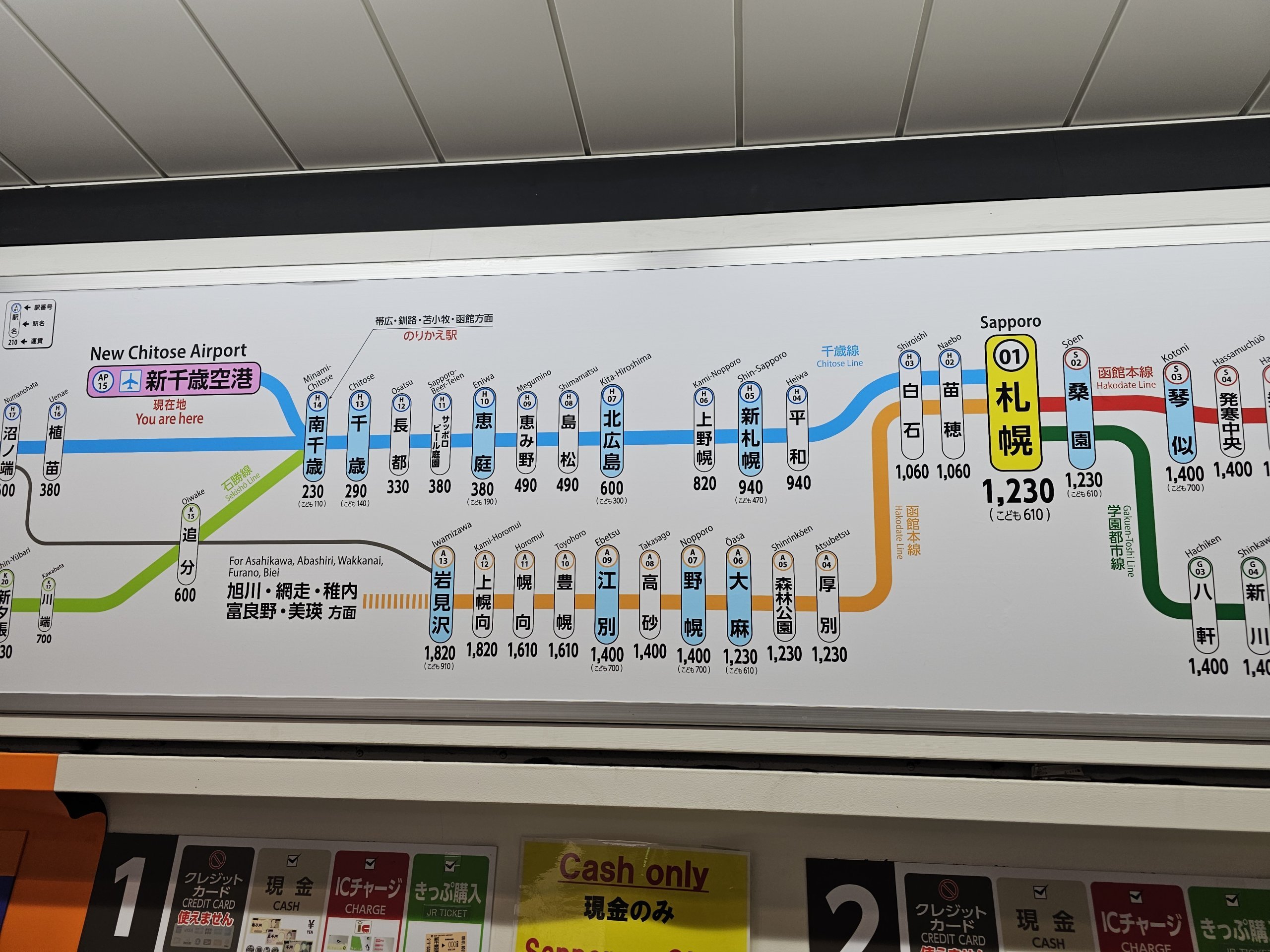 Prípadne sa na platenie cestovného dajú použiť všetky japonské IC karty - ak ju máte z iných ciest do Japonska, nemusíte sa o nič starať, stačí ju priložiť k turniketu. Ak si chcete kúpiť kartu Kitaca, opäť vám stačí mať pri sebe hotovosť.