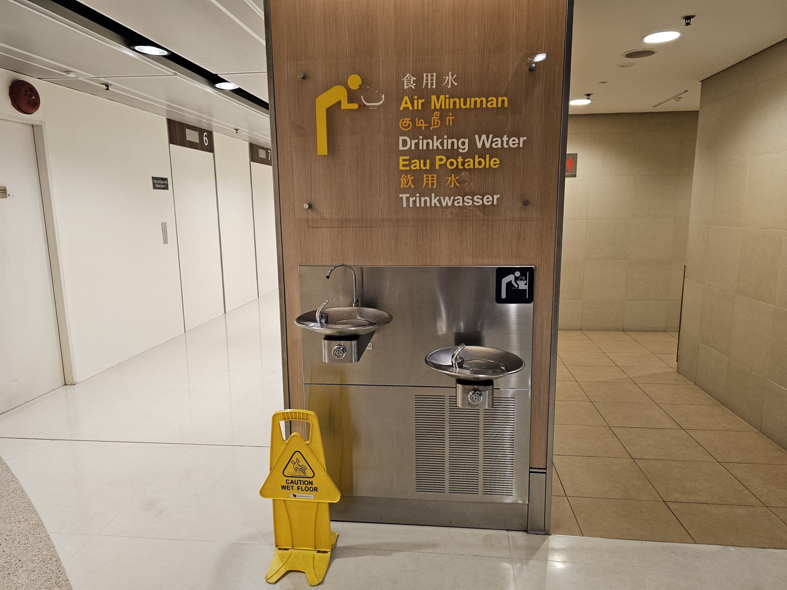 Po bezpečnostnej kontrole sa môžete zadarmo okúpať v mnohých fontánach so studenou pitnou vodou, ktoré sa nachádzajú vo všetkých termináloch.