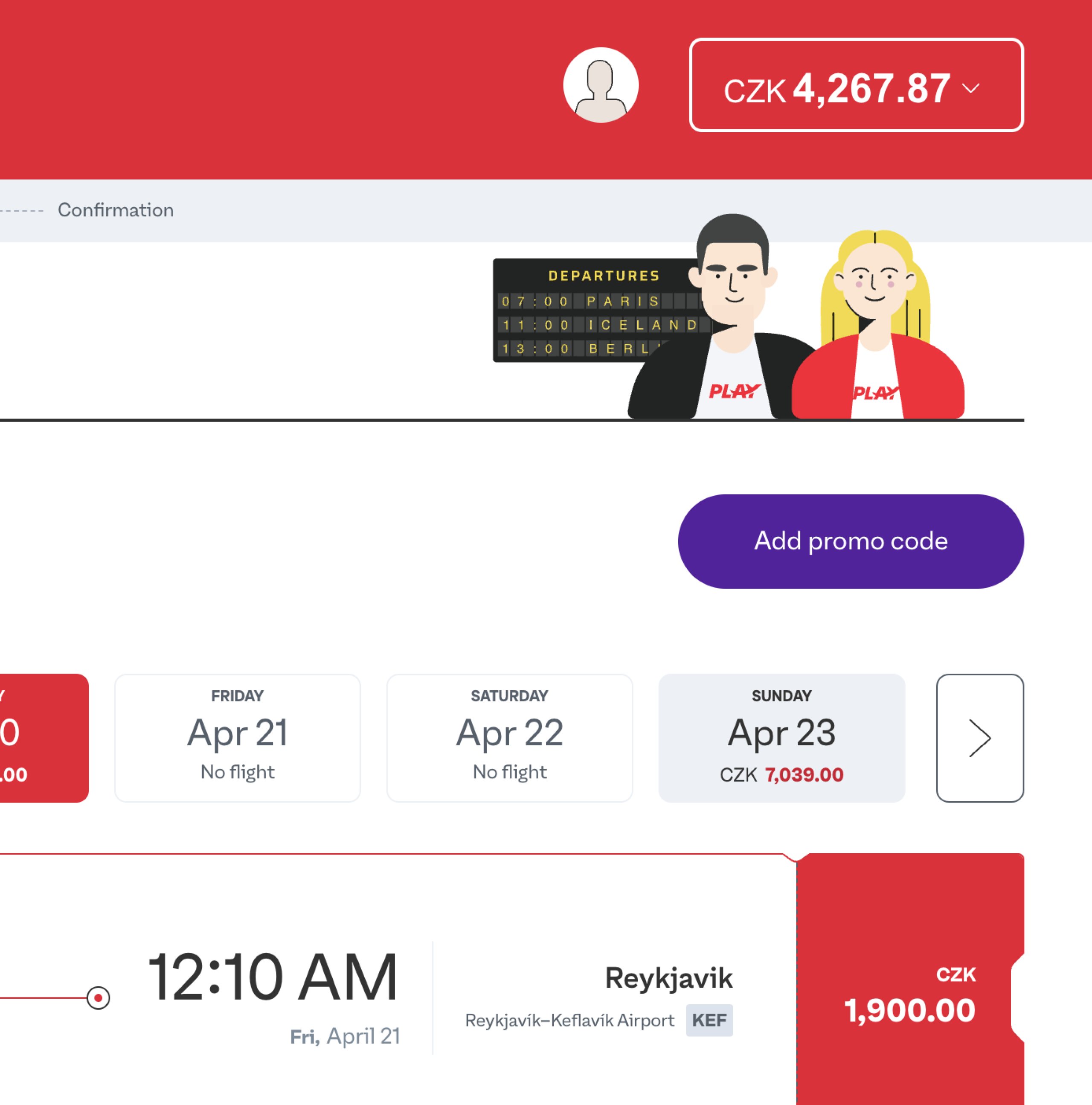 Máte platný a aktuálny promo kód spoločnosti Play Airlines a neviete, kde ho zadať? Najprv vyhľadajte lety, vyberte si konkrétne dátumy v kalendári a pokračujte na podrobný letový poriadok.