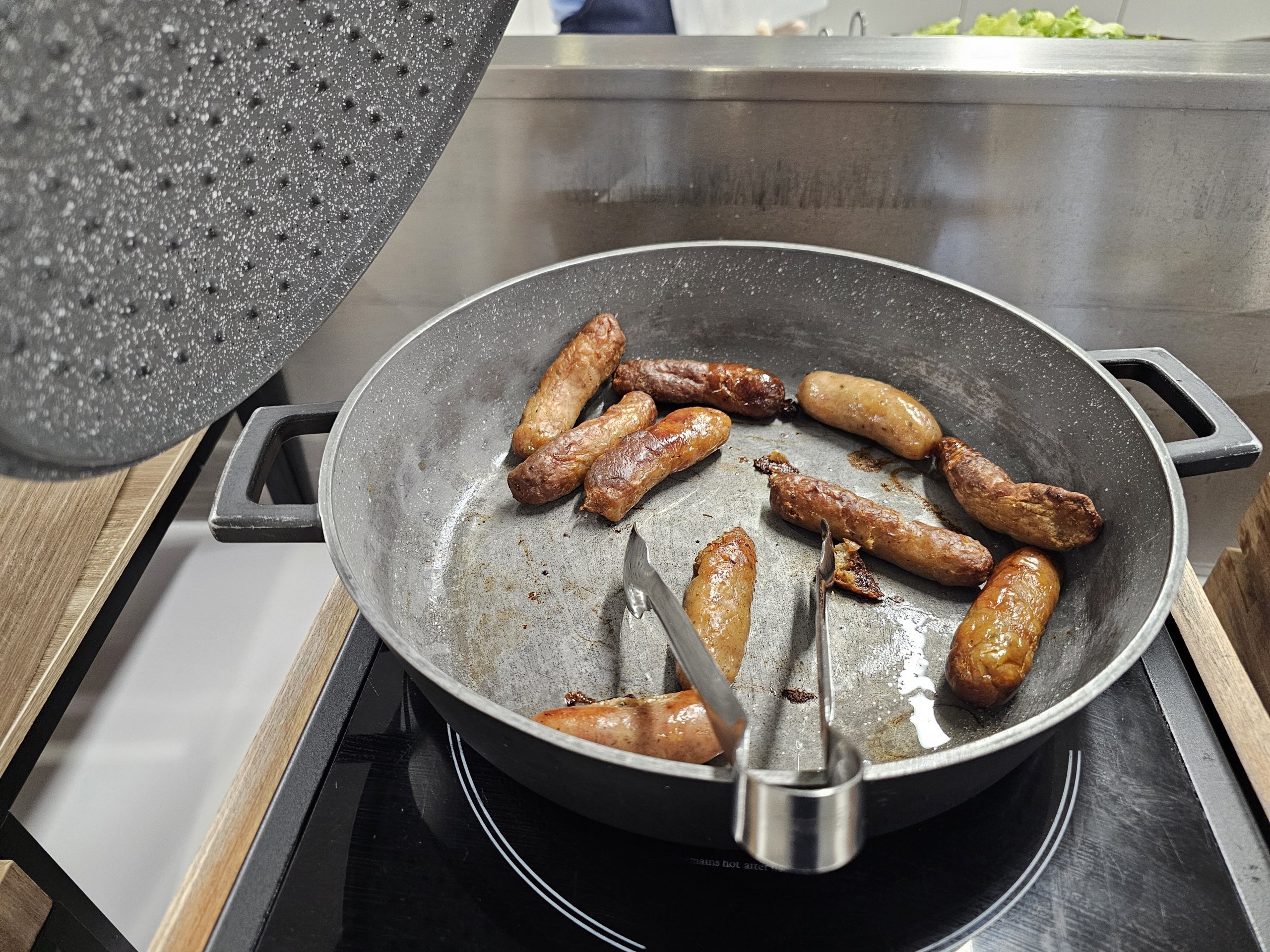 Pri raňajkách je k dispozícii klasické trio miešaných vajec, slaniny a párkov. Okrem toho je zvyčajne k dispozícii fazuľa alebo paradajky.