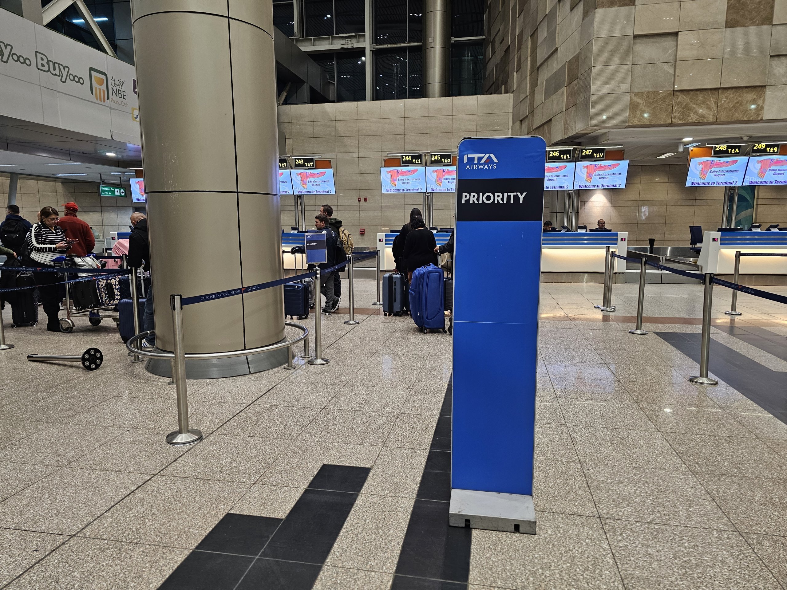 Odbavujem sa na letisku v Káhire, kde má spoločnosť ITA Airways v termináli 2 5 vyhradených odbavovacích priehradiek.