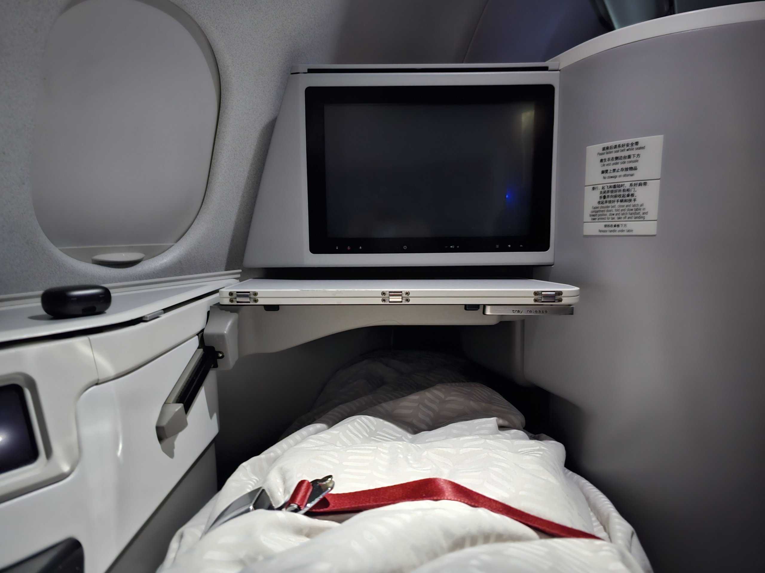 Posteľ je pre mňa dostatočne dlhá (mám 175 cm) a v kabíne je relatívne ticho. Ak je vaším hlavným cieľom prísť do Ázie vyspatý, Airbus A330-300 túto úlohu spĺňa.