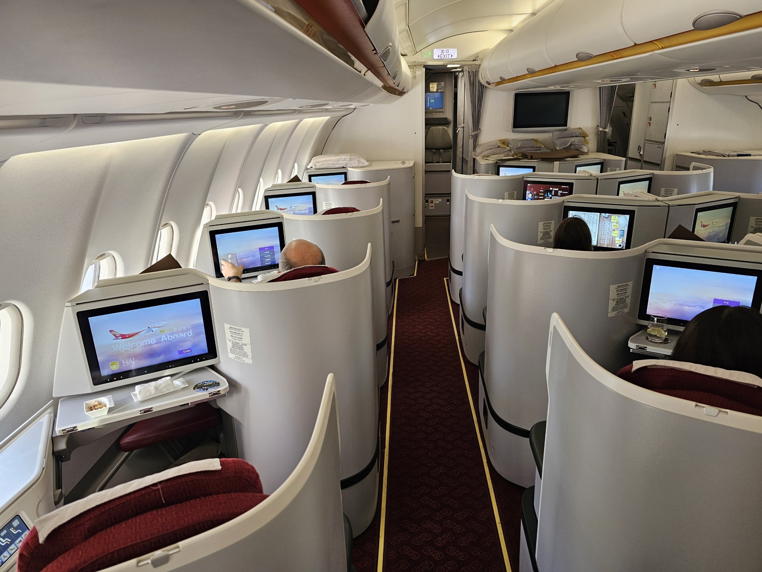 Airbus A330-300 spoločnosti Hainan Airlines ponúka solídne súkromie a úplne rovnú posteľ v biznis triede. To sú základné veci, ktoré sú pri 10-hodinovom lete rozhodujúce.