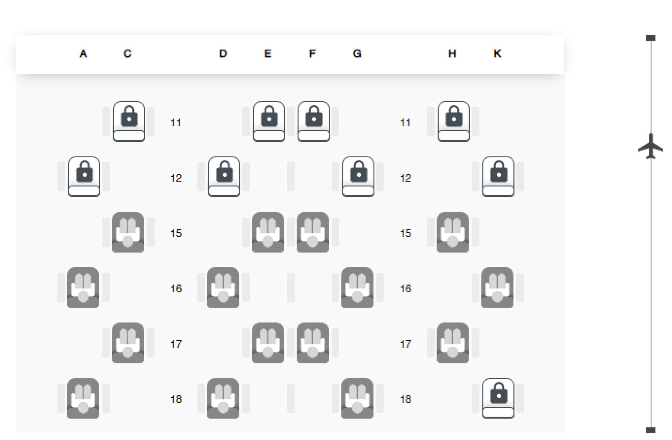 Ak však cestujete vo dvojici a dúfate, že dvojica sedadiel uprostred vám poskytne spoločné súkromie, budete sklamaní. Reálne na seba vôbec neuvidíte.
