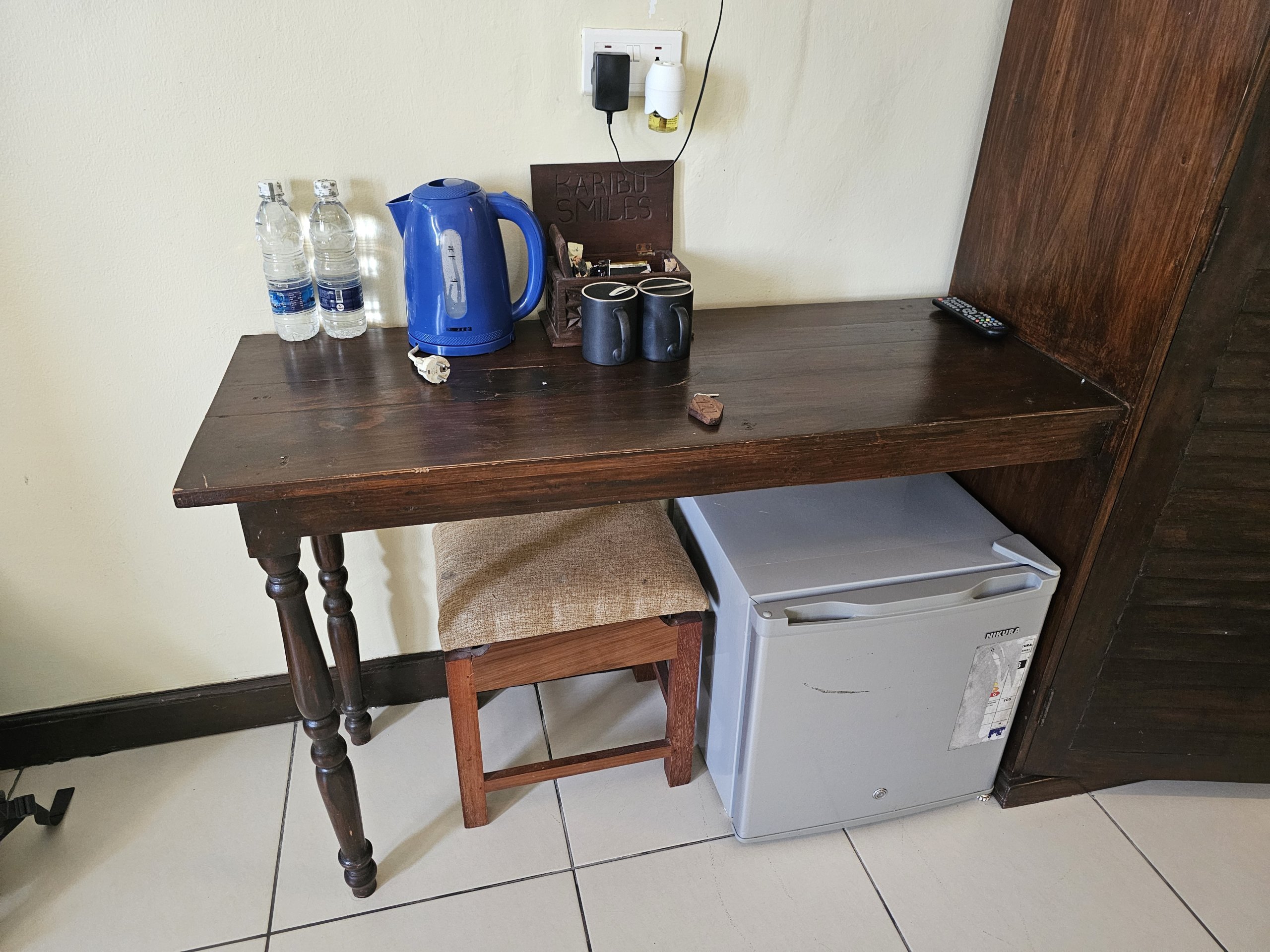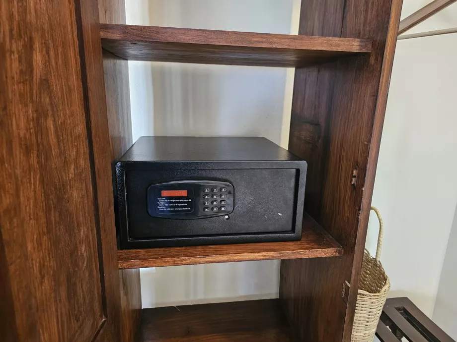 V izbe nájdete aj trezor, plážovú osušku, rýchlovarnú kanvicu, instantnú kávu a čaj.