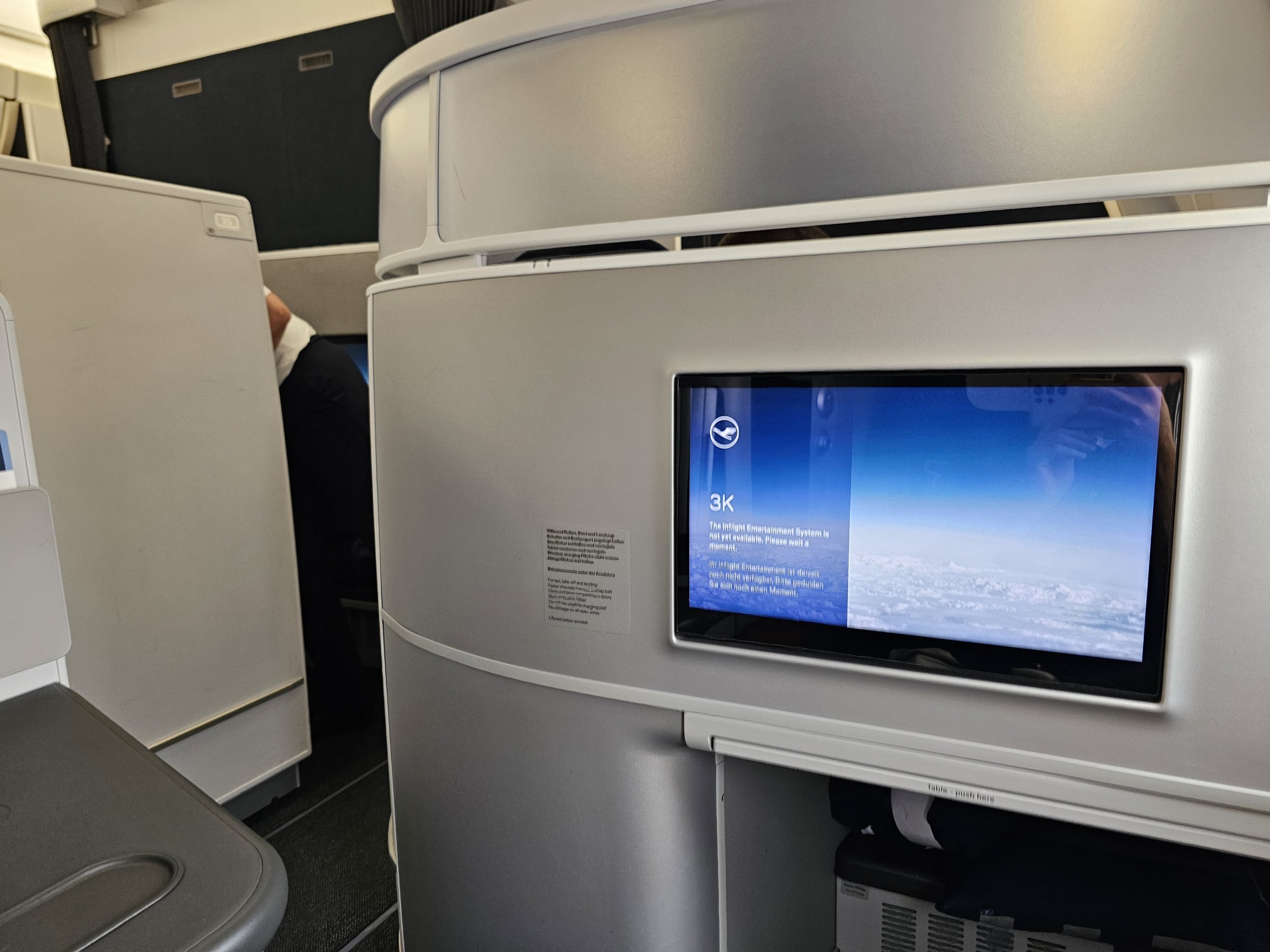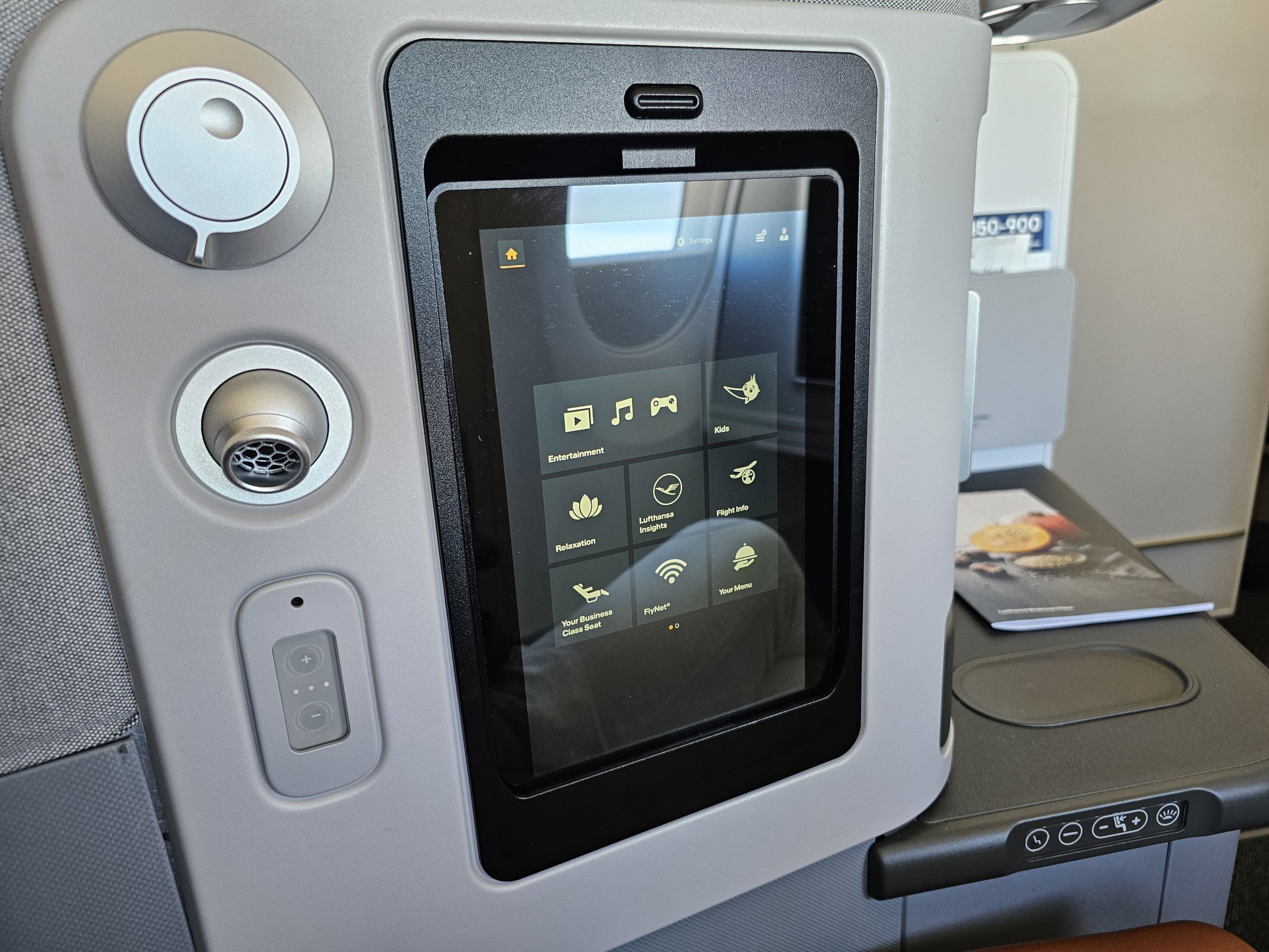Monitor s rozlíšením 4K je skvelý. Ovládanie je buď dotykové priamo na monitore, alebo cez tablet na sedadle, takže IFE môžete ovládať so sklopeným sedadlom alebo z postele.