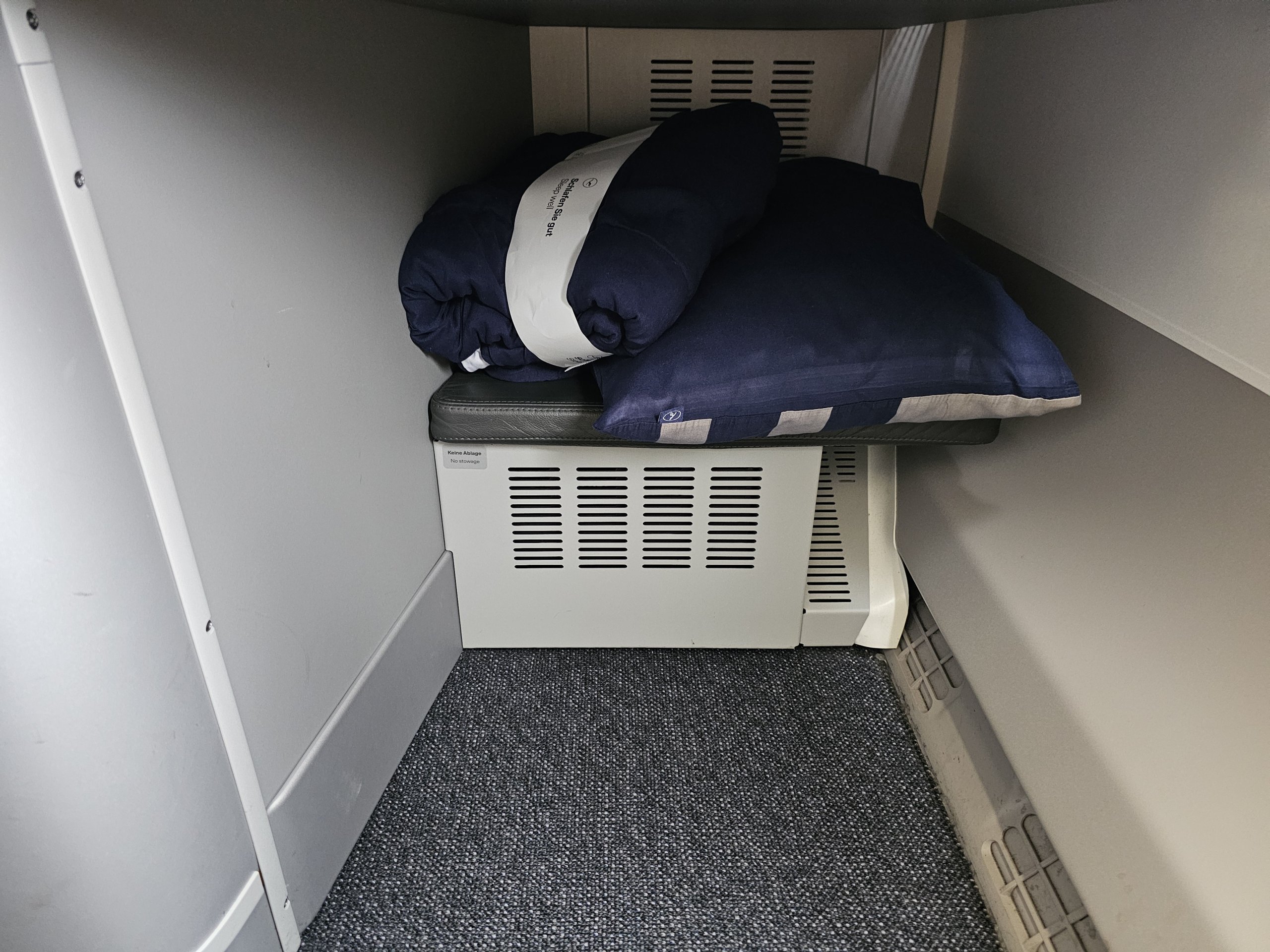 Chýba mu posteľná bielizeň, ale tá býva štandardom len pri nočných letoch.
