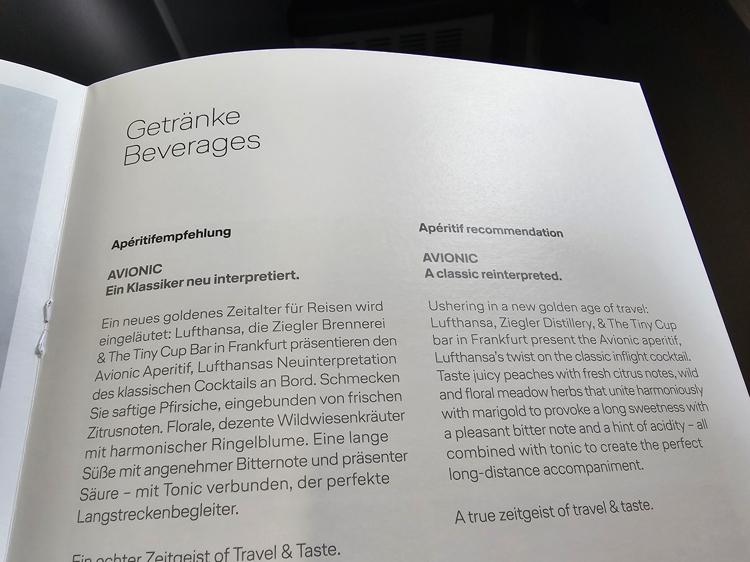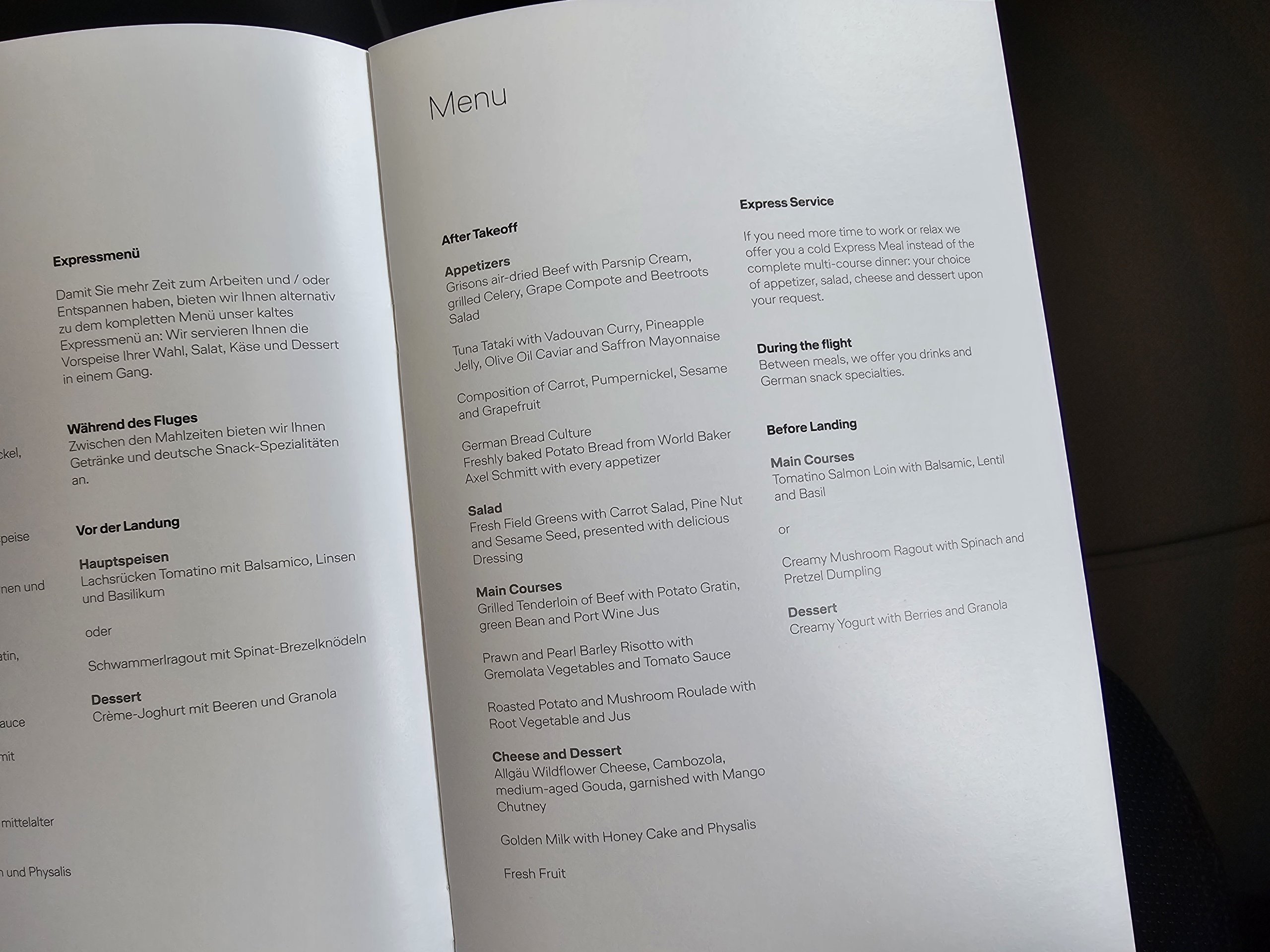 Pred štartom si preštudujem vytlačený jedálny lístok, ktorý je k dispozícii na každom sedadle.