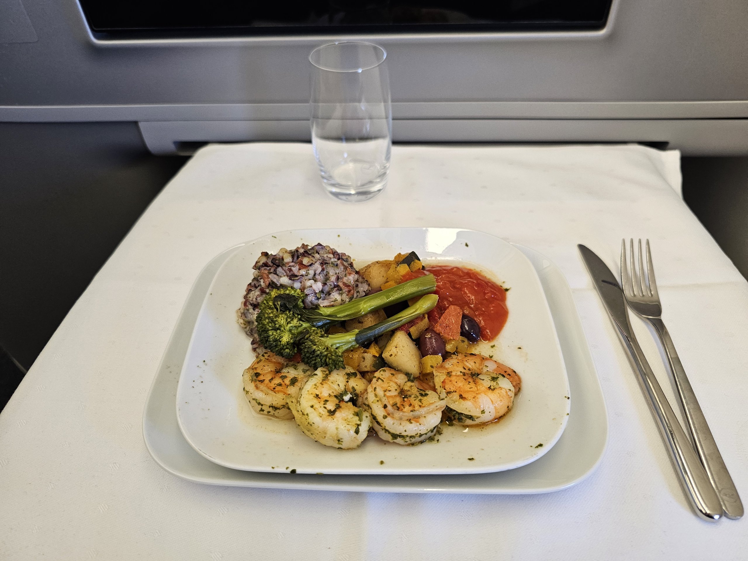 V New Yorku pristávame okolo 18:30 miestneho času, takže servis pred pristátím môžeme nazvať večerou.