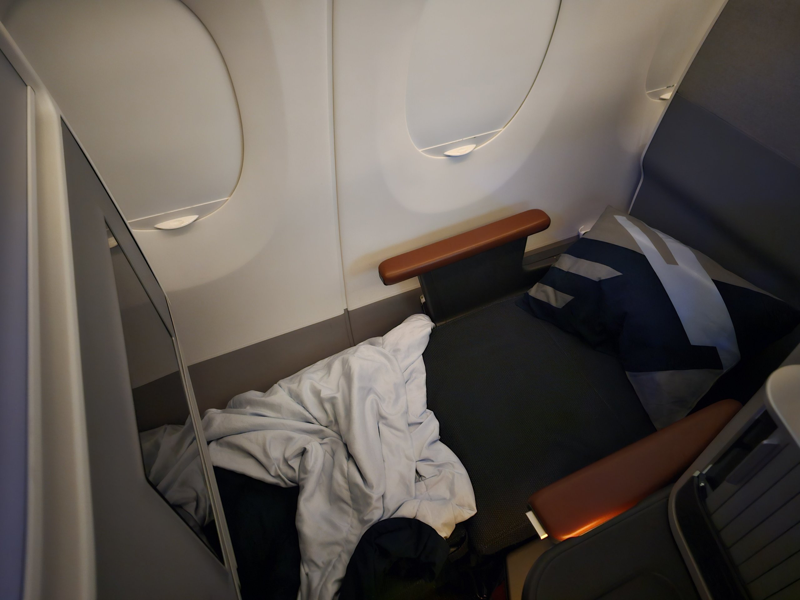 Aj keď išlo o denný let, musel som vyskúšať posteľ v biznis triede.