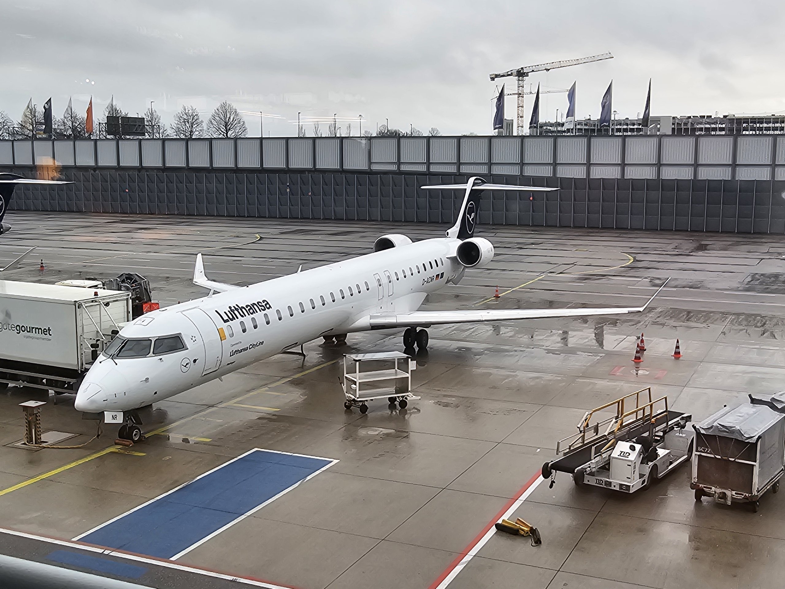 K lietadlu sa dostávam asi 15 minút pred nástupom do lietadla. Letíme najmenším lietadlom vo flotile Lufthansy - Bombardierom CRJ-900 -, čo znamená, že nástup do lietadla nie je cez nástupný mostík, ale pešo.