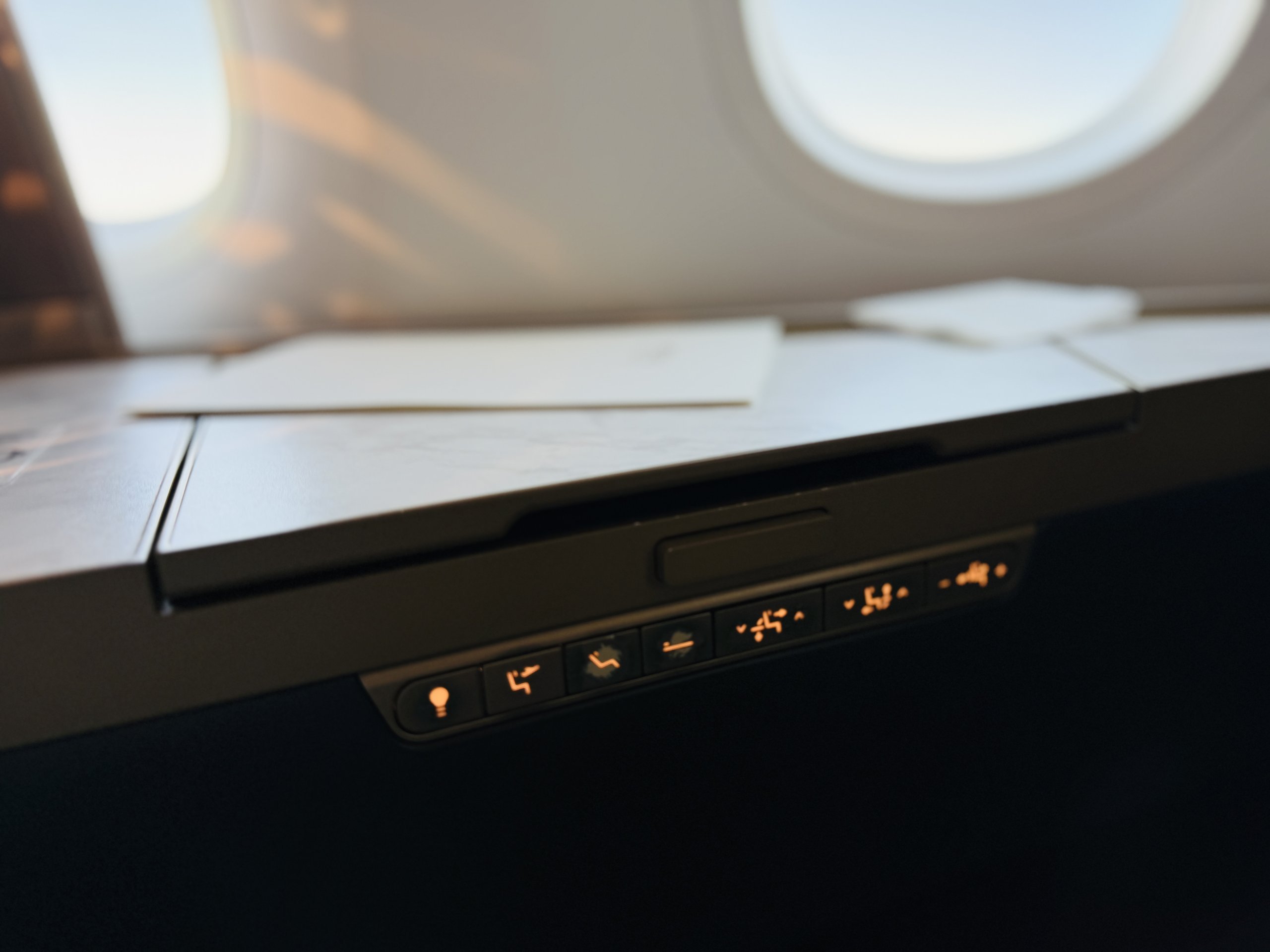 Nastavenie polohy sedadla je vždy krásne po ruke. Deka a vankúš sú značky Armani a sú veľmi pohodlné.