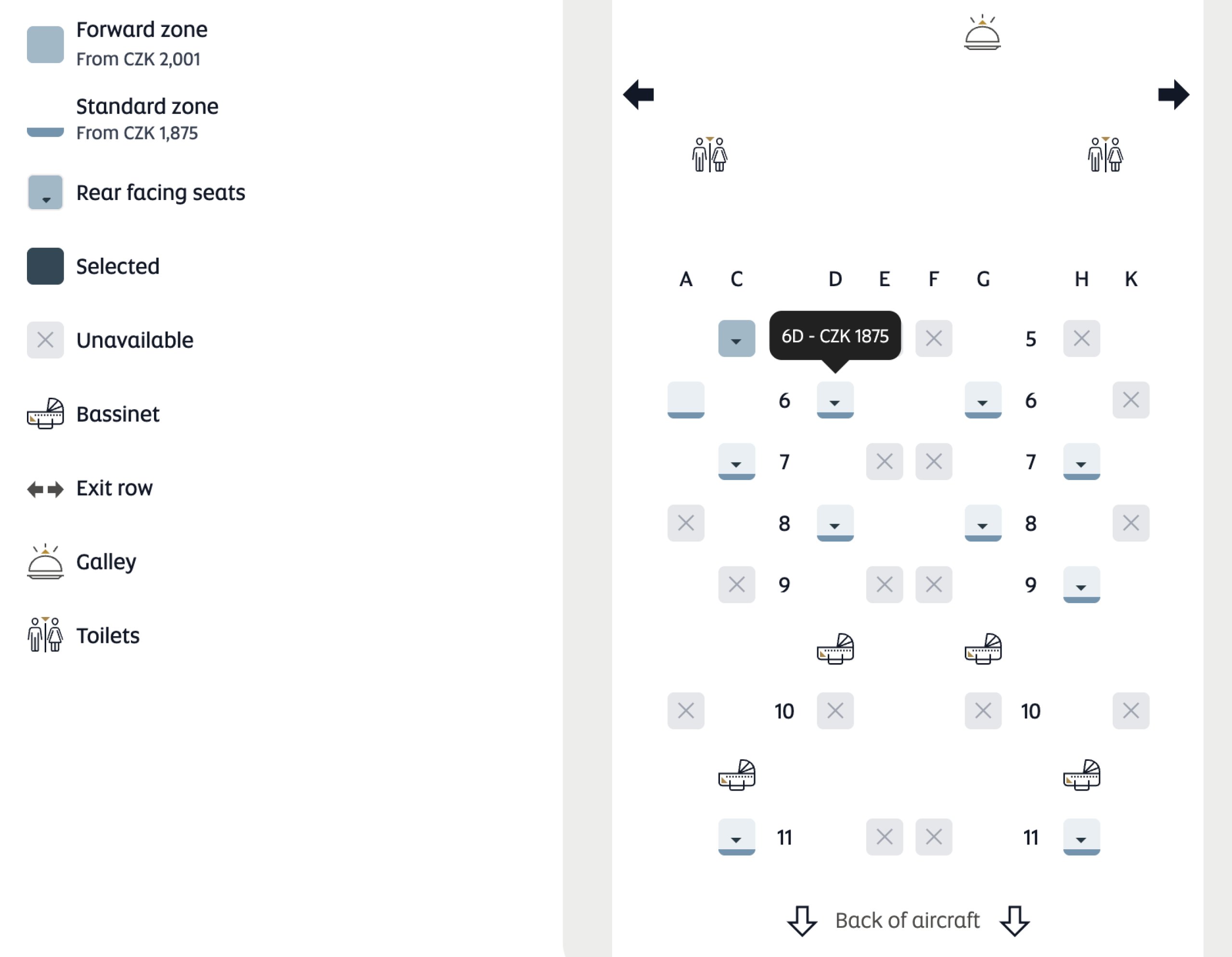 Keď požiadame o zmenu sedadla, ukáže sa nám nové sedadlo odrážajúce zmenu lietadla, ktoré sa rovná tomu, o ktoré sme požiadali - dve miesta pri okne a jedno v strednom rade.
