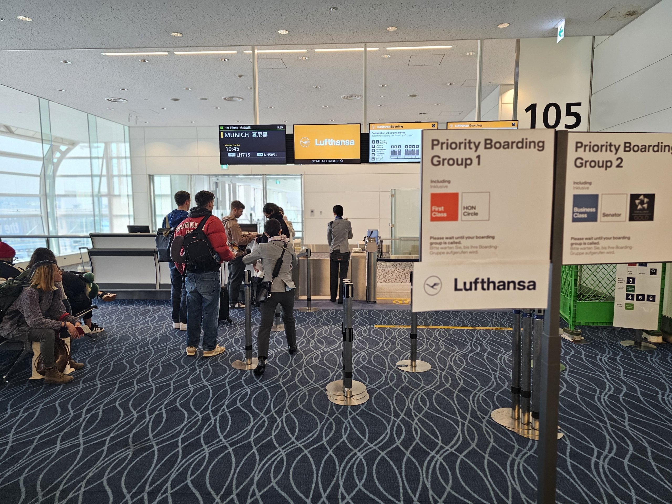 Keďže mám dva veľké kufre, musím ísť k odbavovacej prepážke. Nanešťastie, spoločnosť Lufthansa nemá na letisku Haneda automatické prepážky, takže musím čakať, kým sa začne odbavovanie.