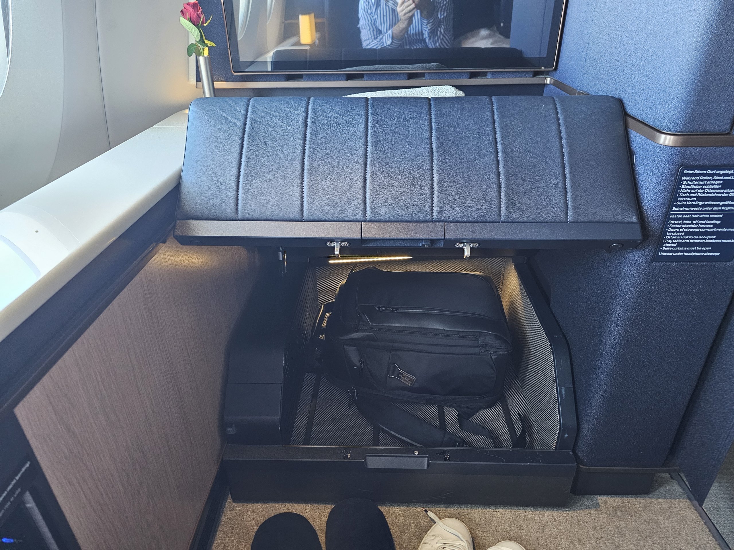 V porovnaní so sedadlami v starej prvej triede je tu o niečo menej úložného priestoru. Stále však ide o relatívne dostatočné množstvo.