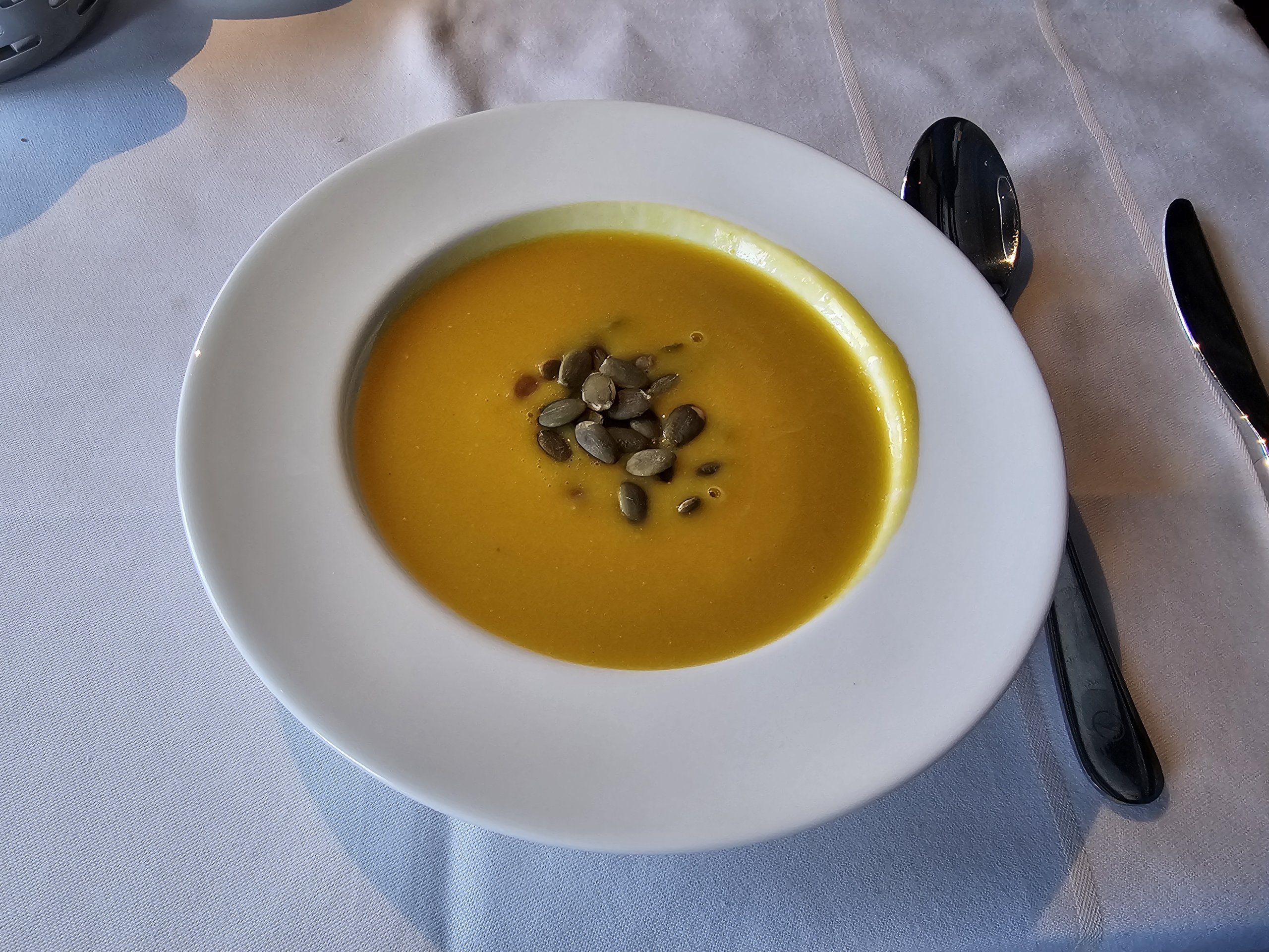 Pred jedlom si dávam skvelú tekvicovú a zázvorovú polievku.