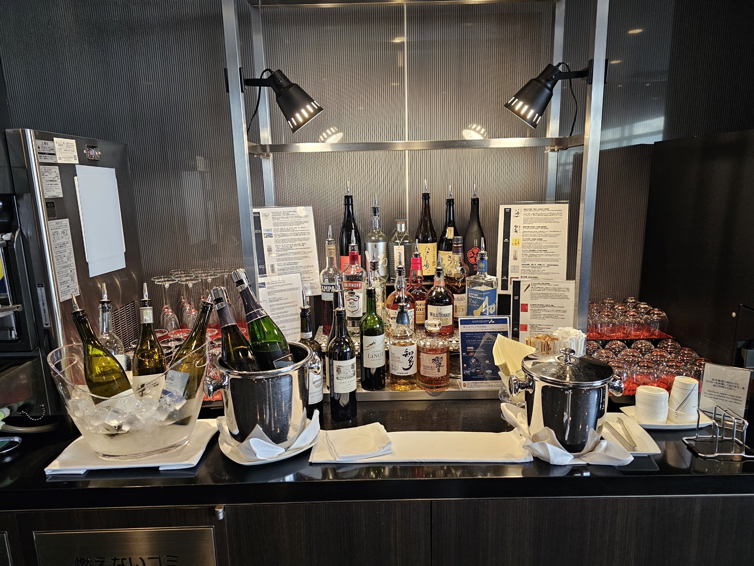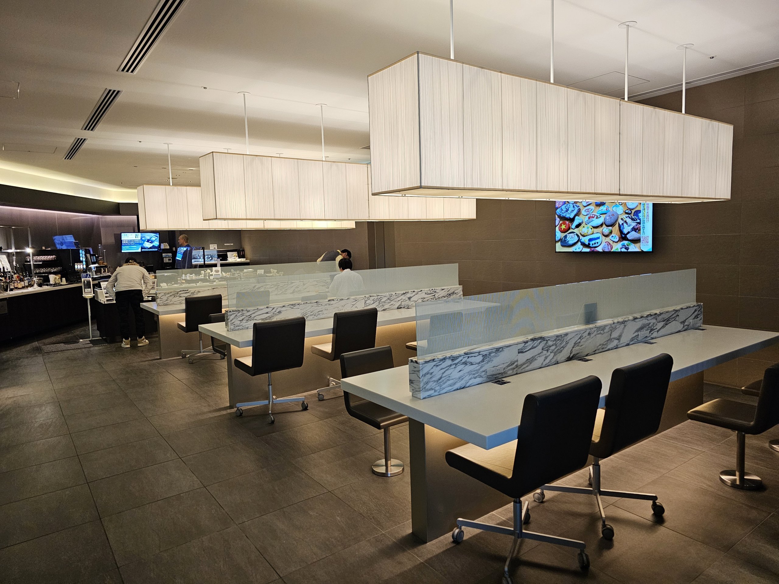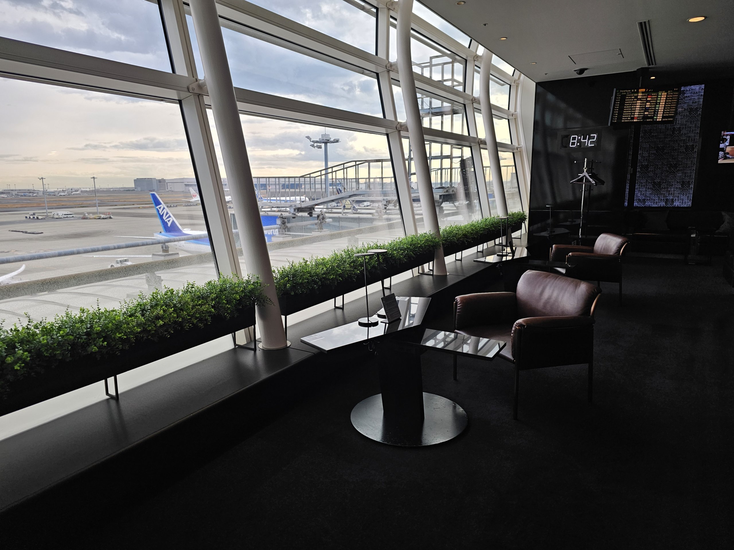 Salónik je veľmi priestranný, má skvelý výhľad na letiskovú plochu a množstvo kabín, ktoré kopírujú sedadlá prvej triedy spoločnosti ANA Japan Airlines.