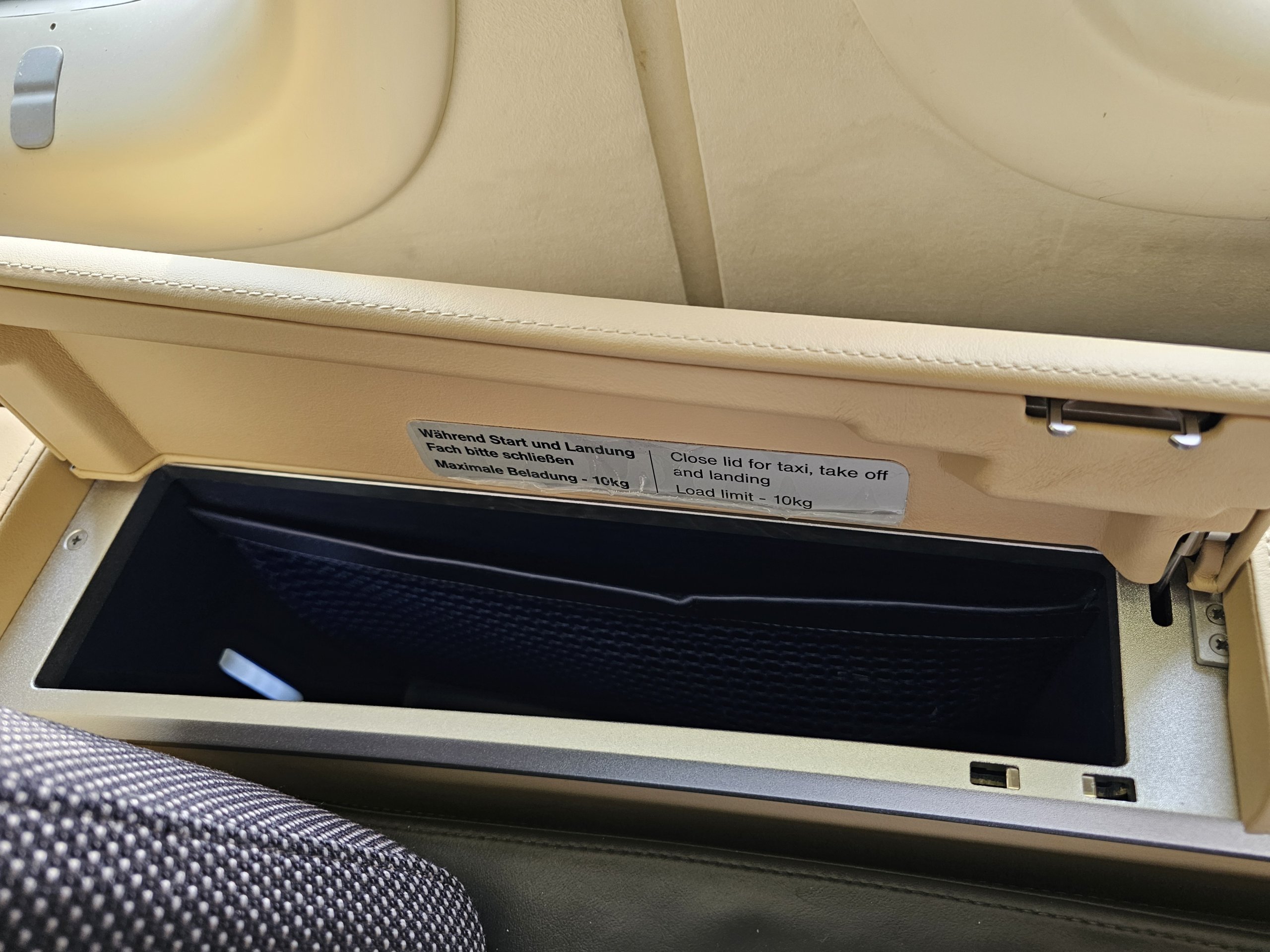 Medzi sedadlom a oknami mám dve priestranné priehradky, do ktorých sa mi zmestia všetky doklady, ako je pas, palubné lístky, ale možno aj veľké tlačené menu alebo veľké slúchadlá.