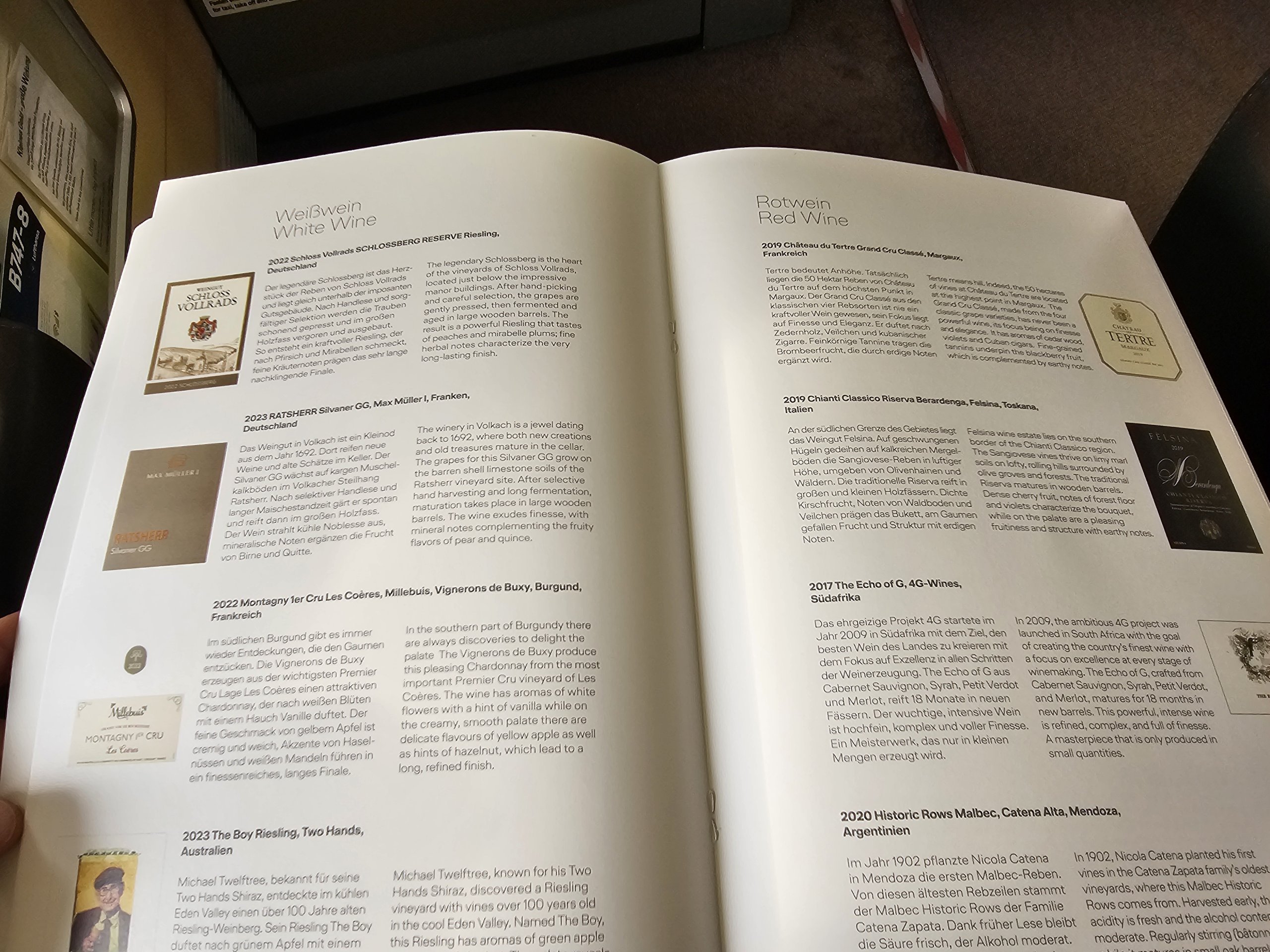 Pred odchodom dostanú všetci cestujúci vytlačené menu a veľmi obsiahly vínny lístok.