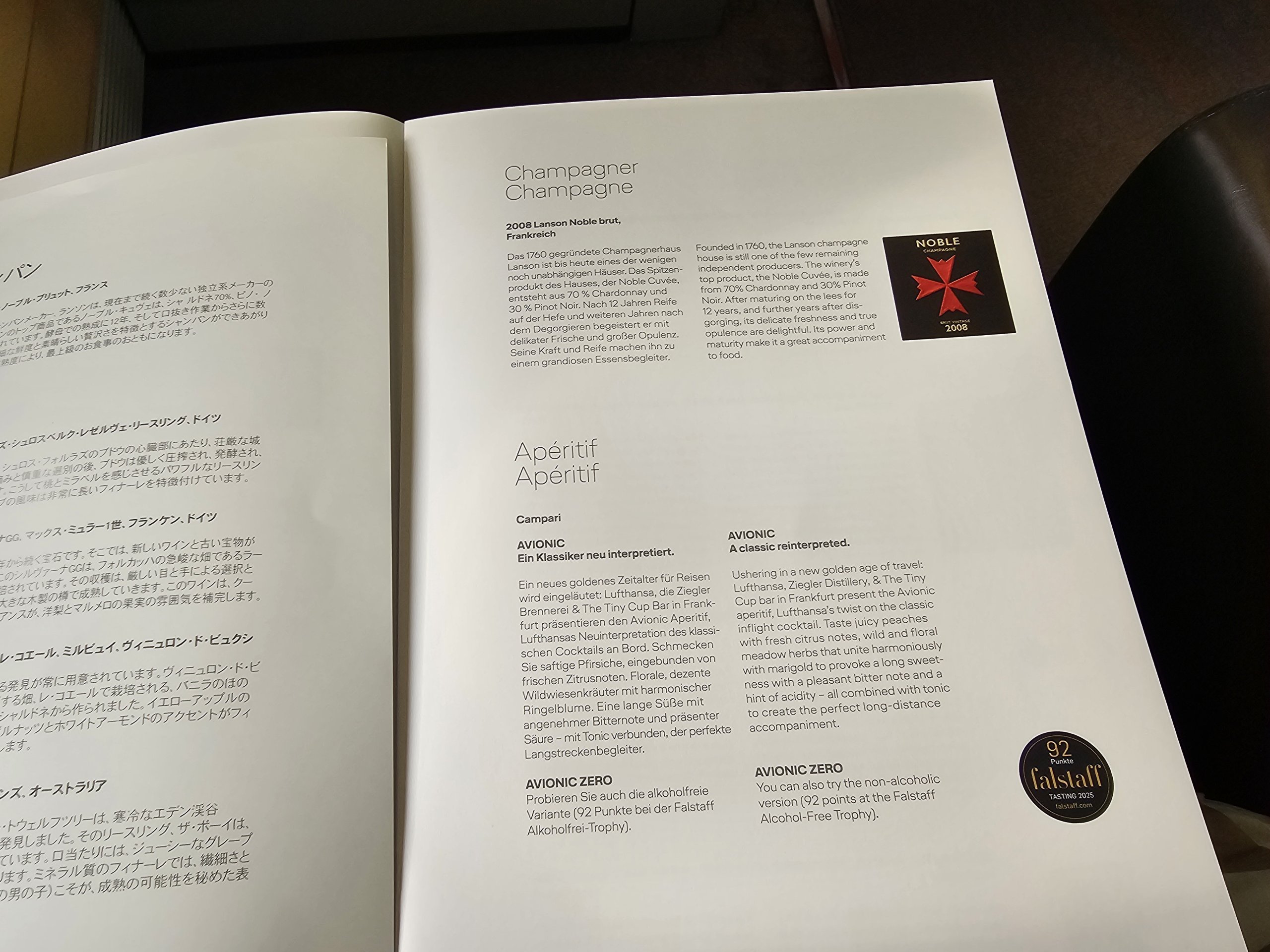 Pred hlavným jedlom si dávam svoj obľúbený značkový koktail Lufthansa - Avionic.