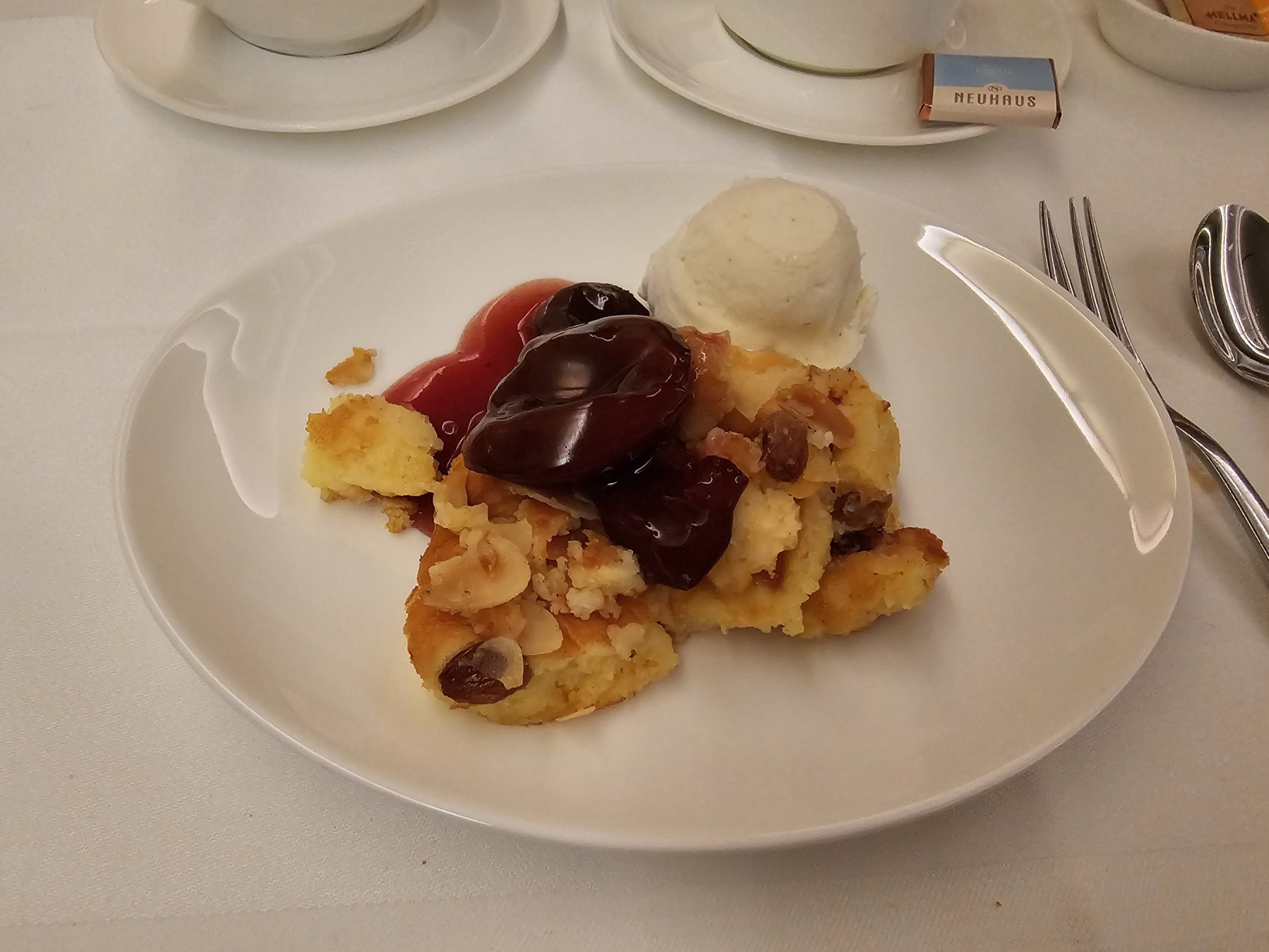 Milujem tradičný nemecký Kaiserschmarren. Tu ho dostávam so slivkovou omáčkou a úžasnou vanilkovou zmrzlinou. Myslím, že som nikdy nejedla lepší cisársky kreker.