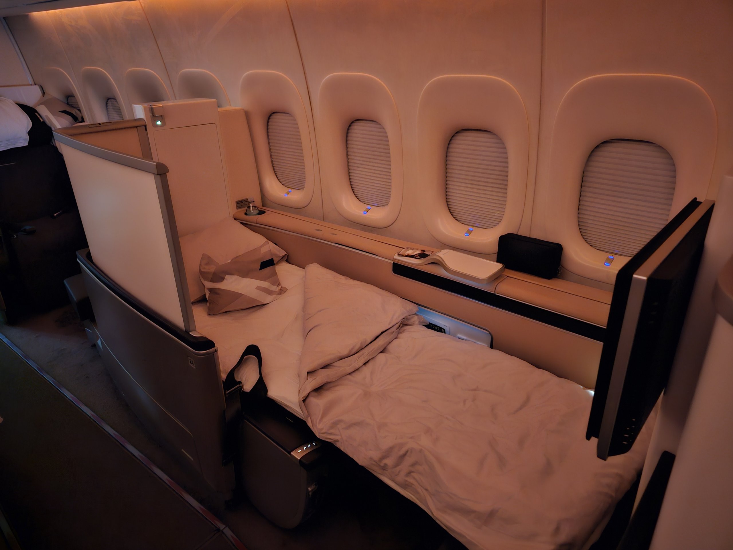 Súkromie teda nie je úplne ideálne a nabudúce by som si pravdepodobne vybral sedadlá 1A alebo 1K priamo v prednej časti lietadla.