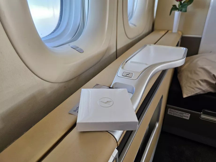 Už vopred si vyberám sedadlo 2A. Na rozdiel od novej biznis triedy Lufthansy Allegris nie je výber konkrétneho sedadla v prvej triede spoplatnený.