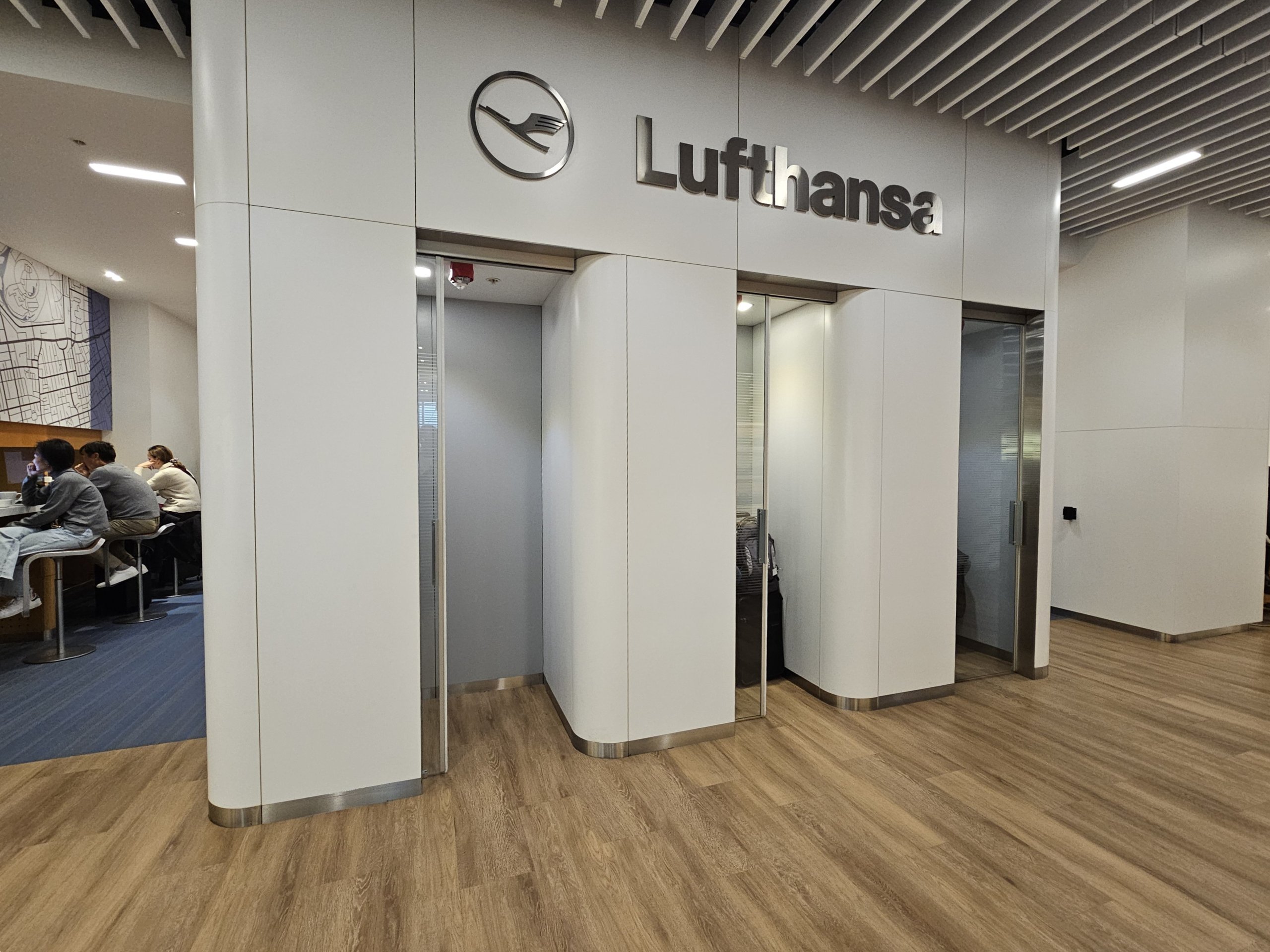 V salóniku spoločnosti Lufthansa na letisku Heathrow nie sú k dispozícii žiadne sprchy.